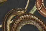 Snakey, Black, alegerea supremă pentru a vă transforma spațiul de locuit într-un sanctuar fascinant al frumuseții naturii. Tapetul nostru din piele de șarpe prezintă ilustrațiile complicate ale numeroaselor specii de șerpi și modelele lor captivante pe un fundal închis.