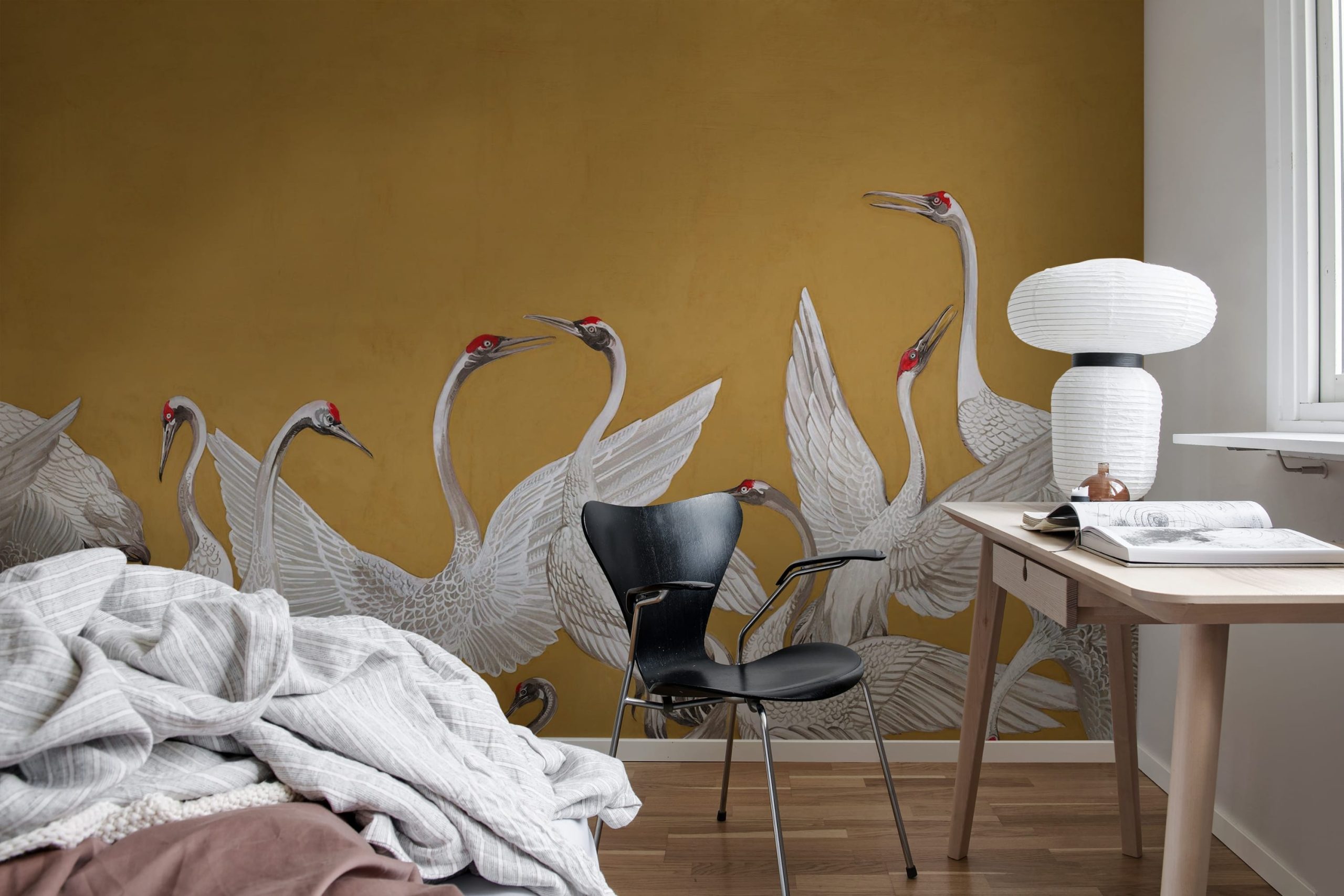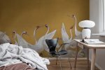 Home Tapet și Fototapet Soaring Cranes, Yellow, Rebel Walls