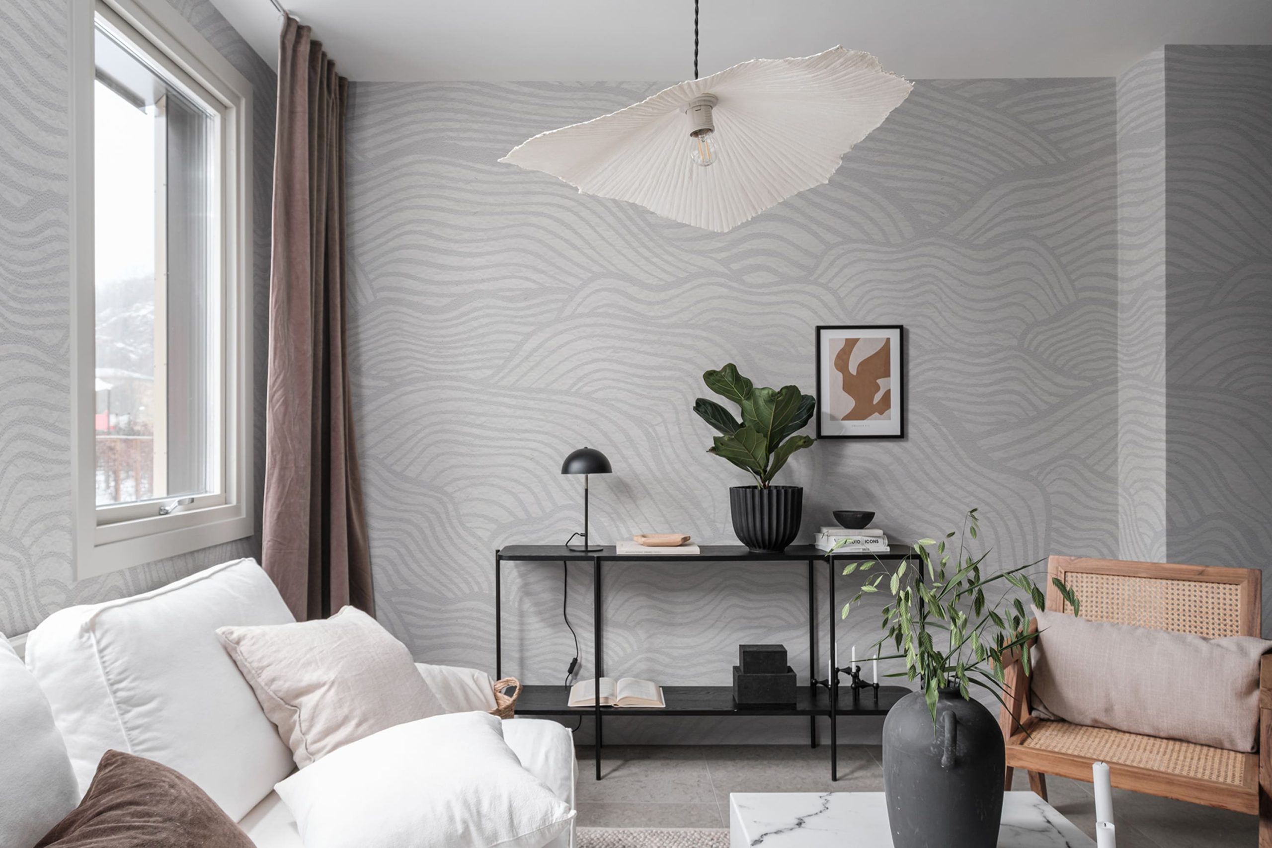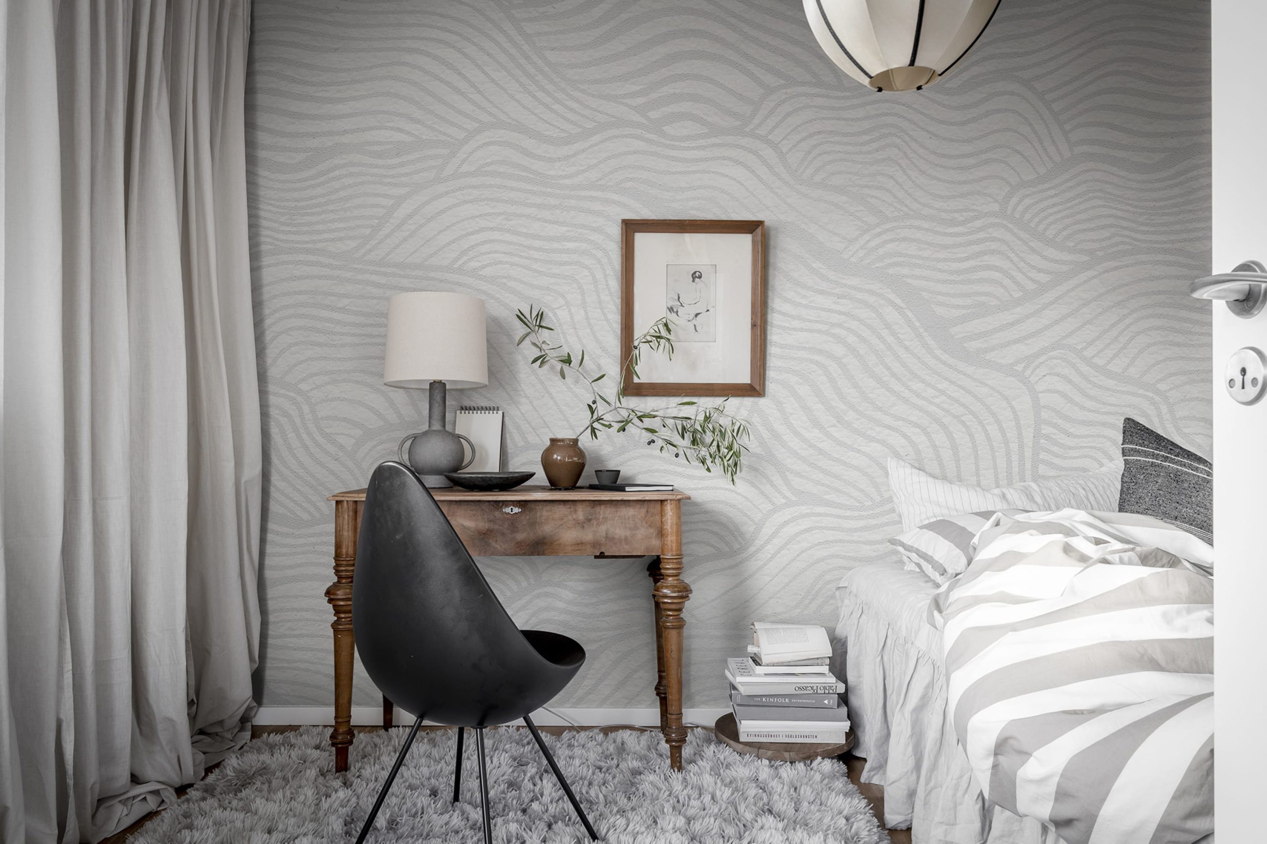 Acest model curgător de linii grafice care formează valuri neregulate are influențe atât din Asia, cât și din formele frumoase ale naturii. Tapetul are o structură vizibilă, aproape asemănătoare hârtiei. Acest tapet adaugă interiorului un sentiment poetic, neîmblânzit, dar echilibrat. Un fundal minunat pentru mobilier retro.