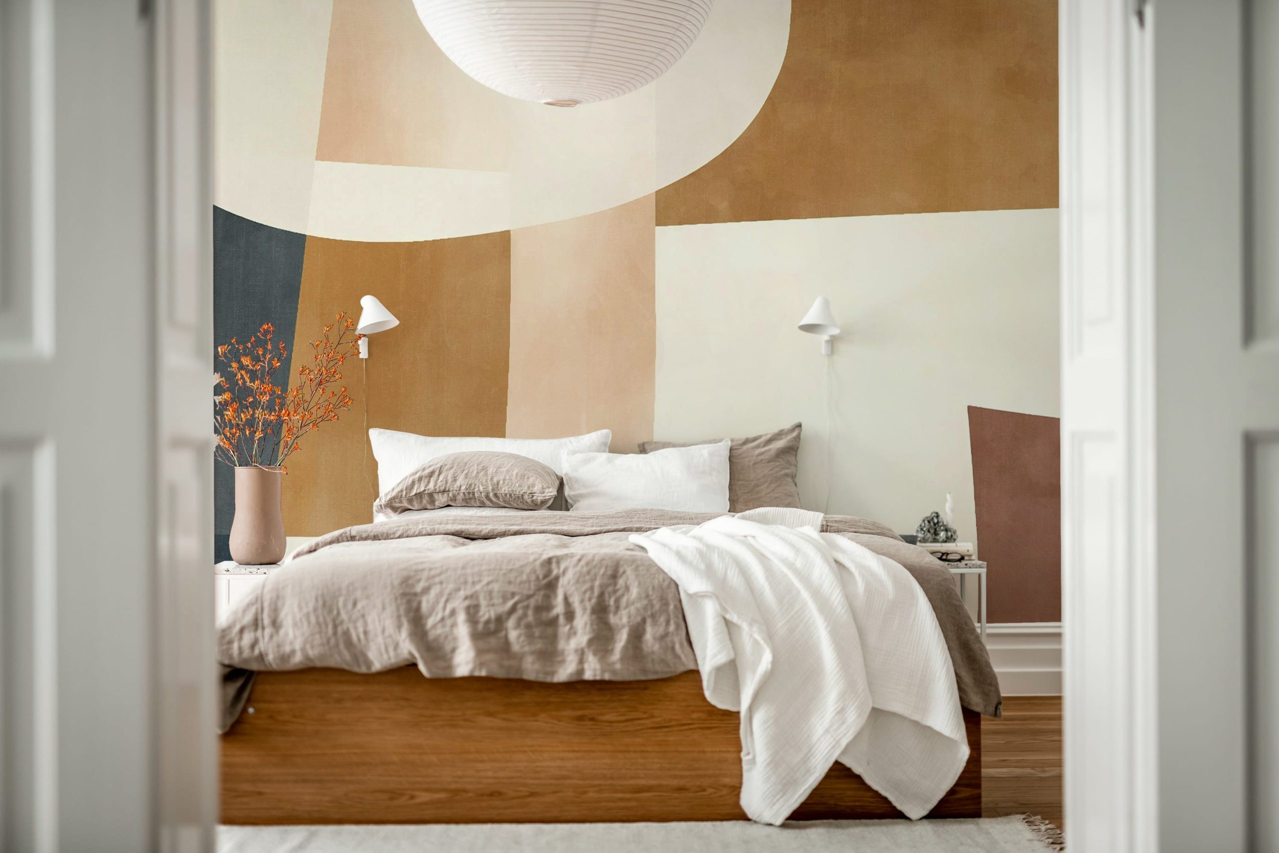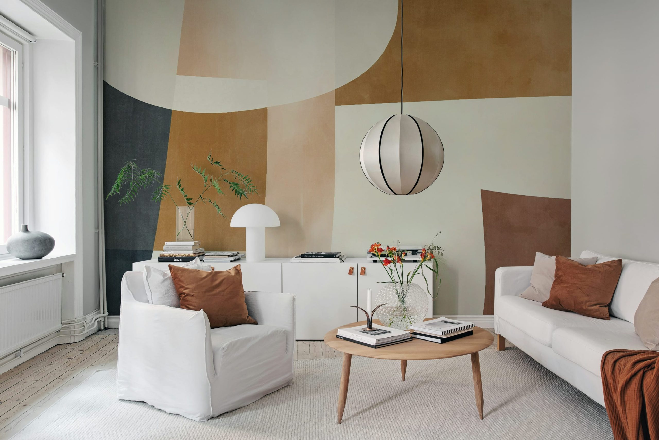Adaugă un plus de stil cu acest fototapet modern. Tonurile calde de maro și bej vor crea un ambient primitor.