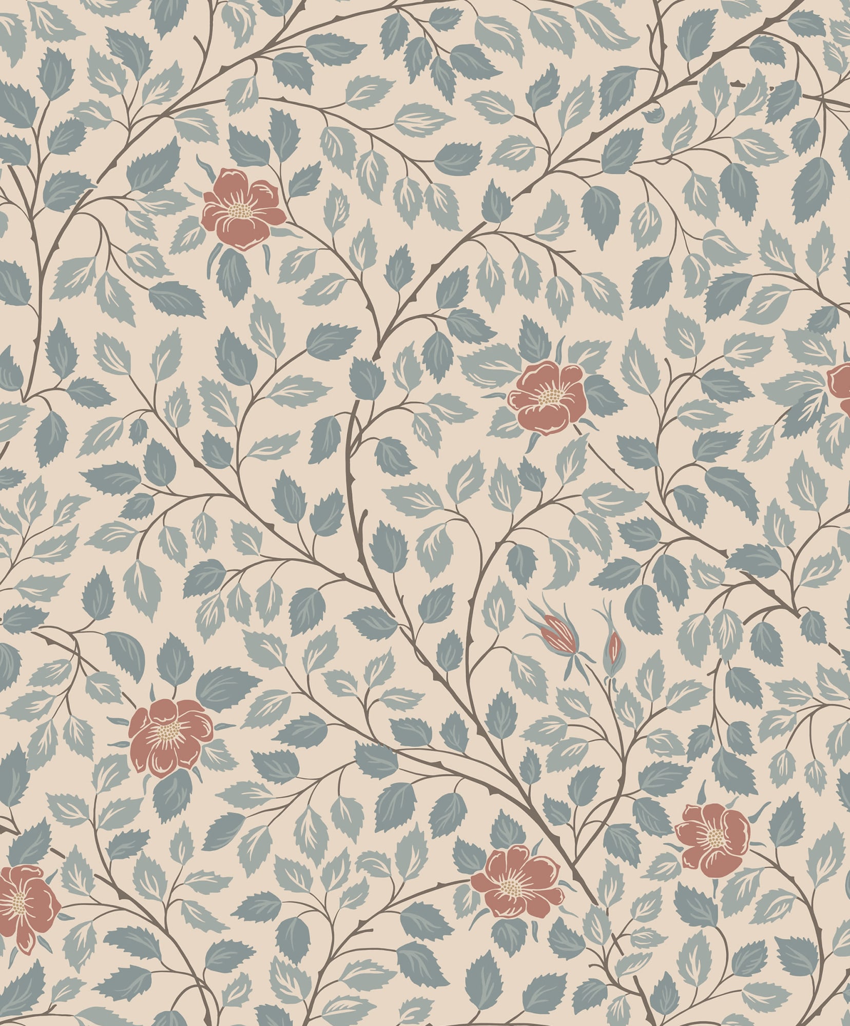 Modelul Castle Rose este numit după reședința de vară a familiei regale suedeze, Solliden din Öland. Înfășurat și învăluitor în culori plăcute, acesta creează o cameră cu model odihnitor. Schema de culori, Blue, vine în bej moale, albastru și teracotă.