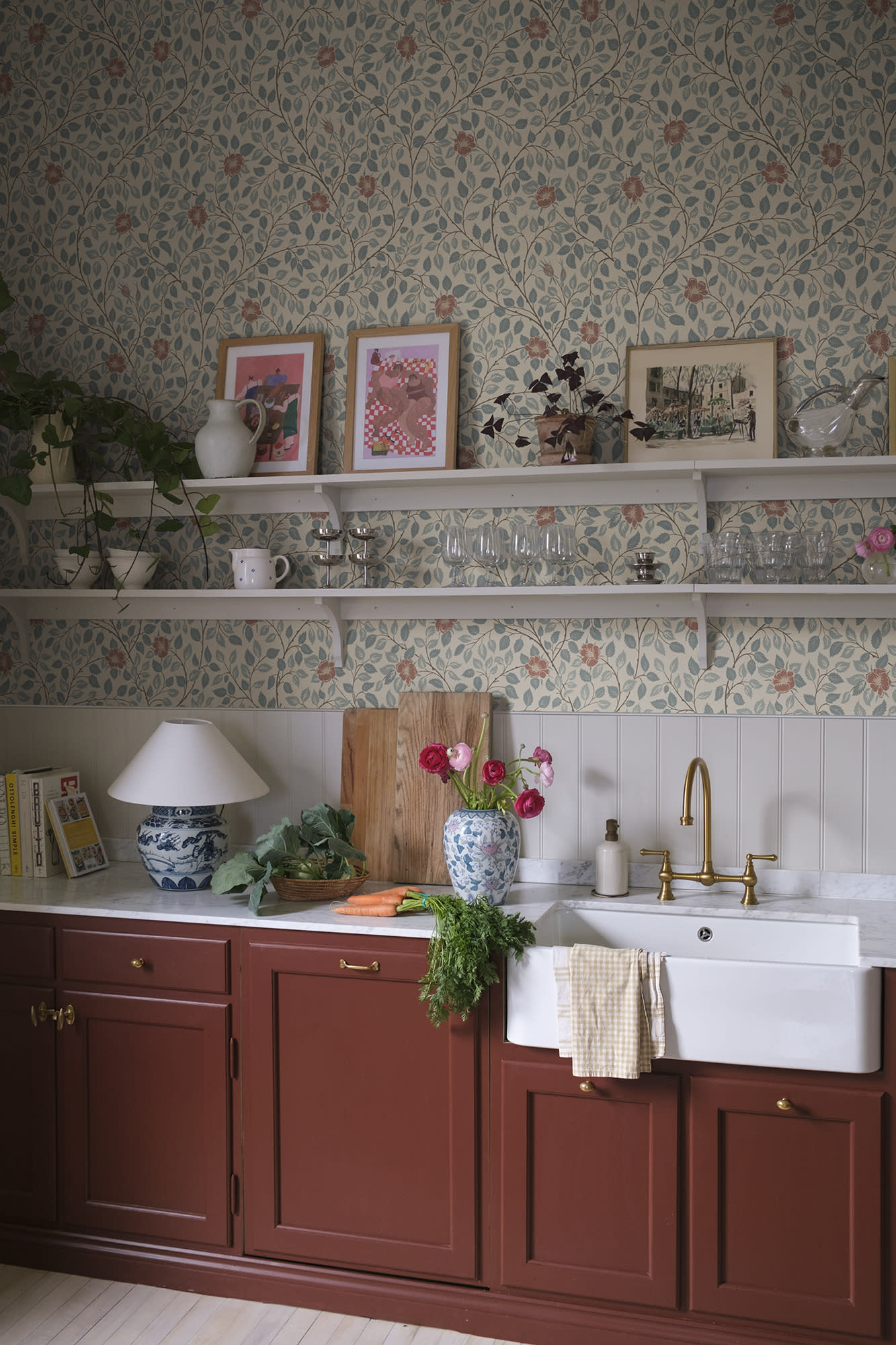 Marieberg este o operă de artă murală care arată ca un decor de porțelan frumos pictat manual. Frunzișul formează un