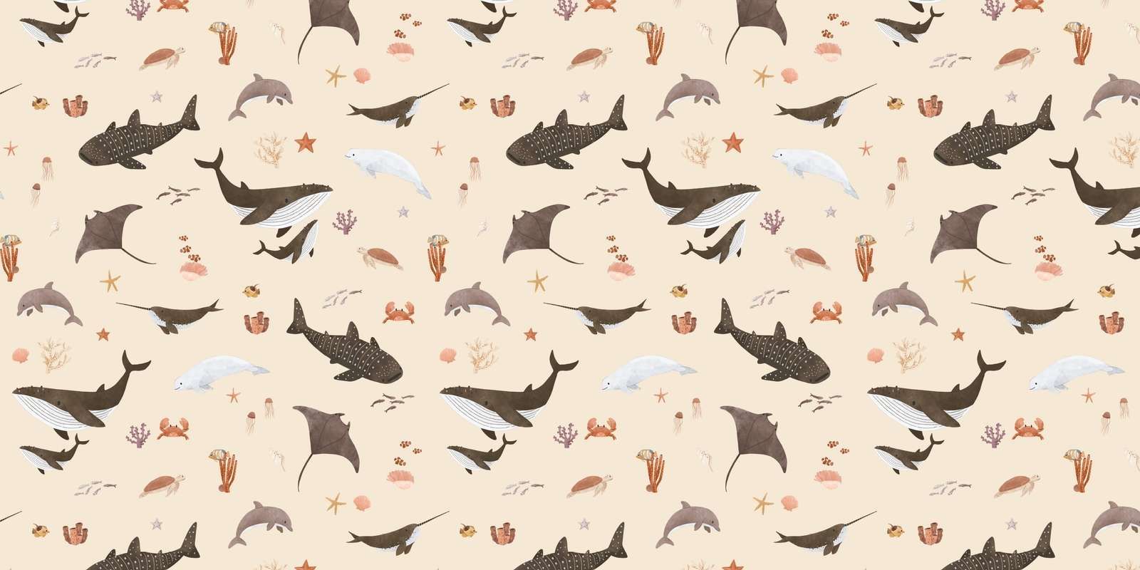 Adaugă o notă maritimă subtilă cu acest tapet bej cu ilustrații delicate de viețuitoare marine. Perfect pentru camera copiilor, creând un ambient liniștit și plin de farmec.