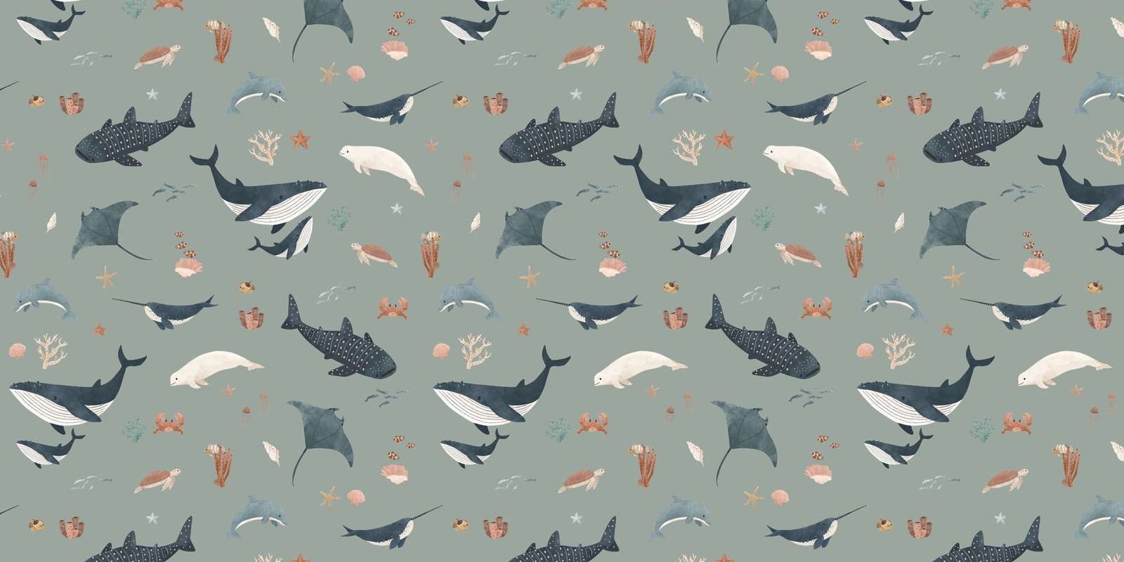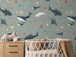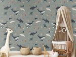 Creează o atmosferă marină încântătoare în camera copilului! Tapetul verde cu animale marine aduce prospețime și un aer vesel. Perfect pentru o cameră plină de aventură și imaginație.