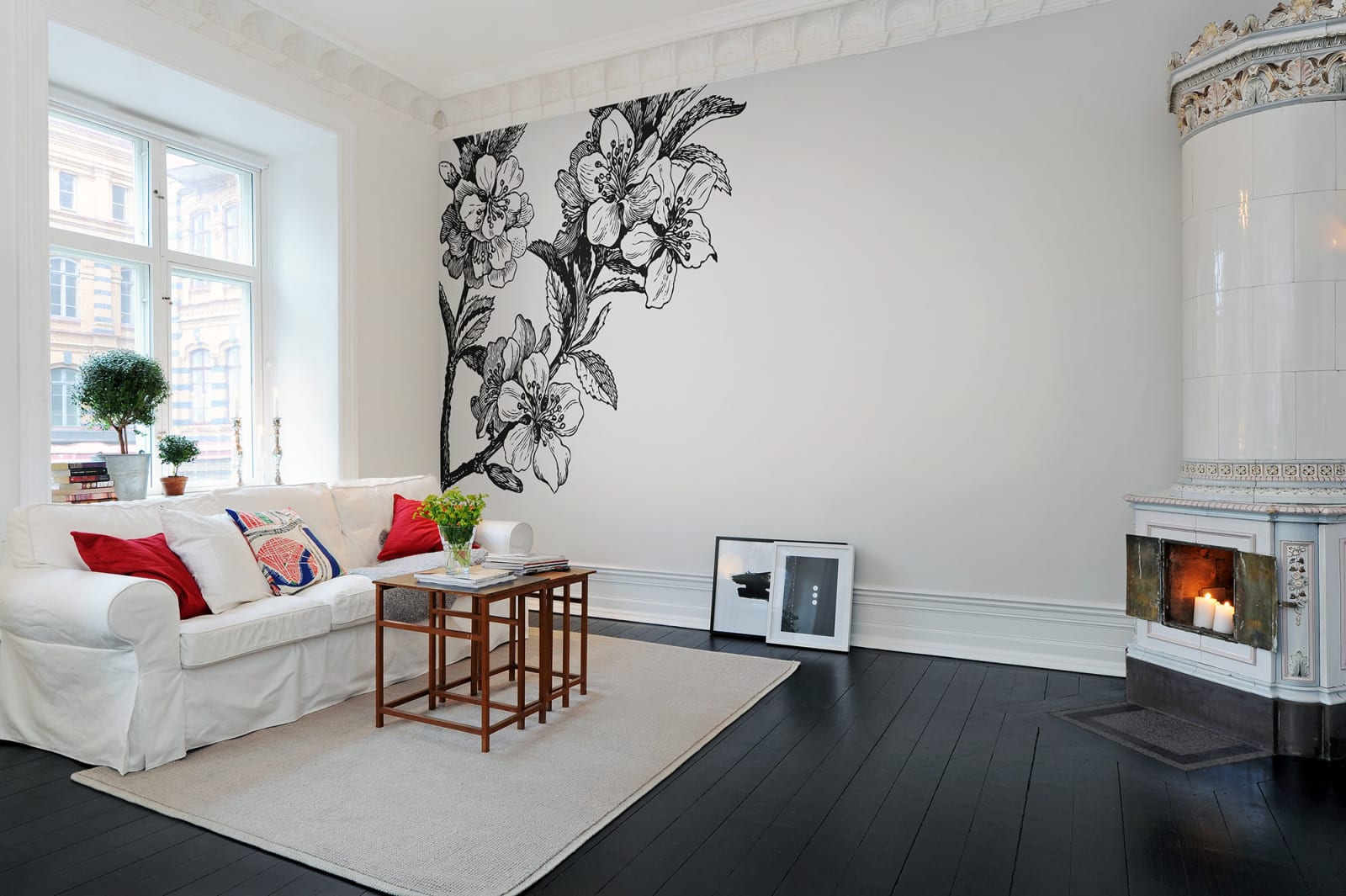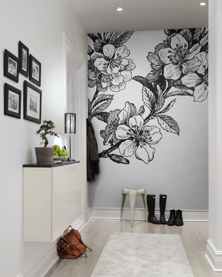 Îmbrățișează primăvara și romantismul cu acest fototapet alb-negru.
