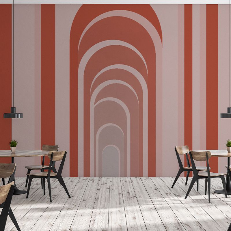 Adăugați o notă de stil modern casei dumneavoastră cu acest tapet abstract. Designul geometric cu arce și dungi, în culori calde de teracotă și roz pudrat, creează un aspect sofisticat și elegant. Tapetul este perfect pentru a adăuga o atingere de modernitate în living, dormitor sau hol, și va transforma orice cameră într-un spațiu primitor și plin de farmec.