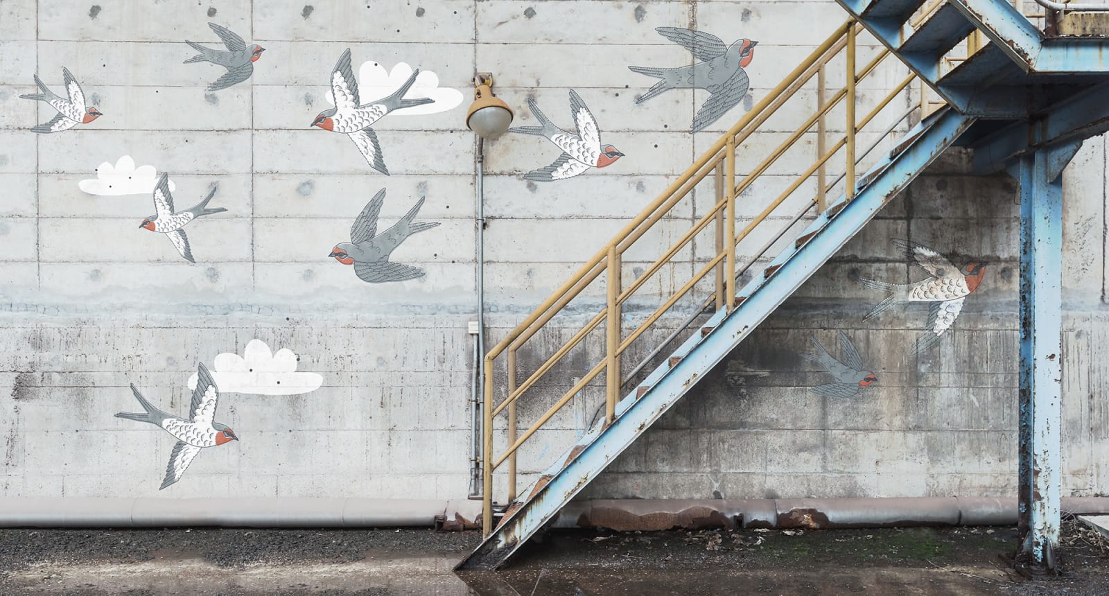 Home Tapet și Fototapet Stairway Graffiti, Swallow, Rebel Walls