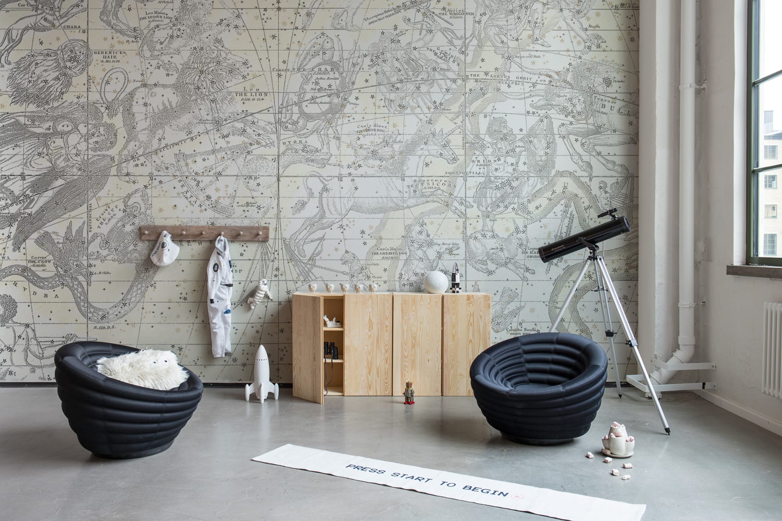 Această versiune vintage a astronomiei o învinge pe cea modernă. Tapetează peretele tău – sau de ce nu, tavanul – cu acest cer înstelat. Nivelul de detaliu este magnific și există bucăți aurite care vor adăuga un plus de lux.