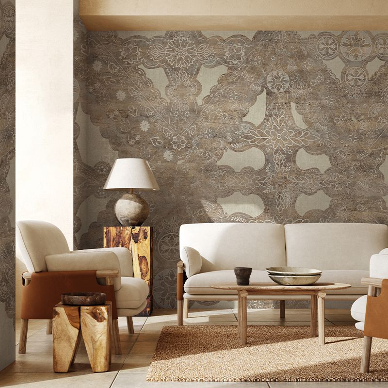 Adăugați o notă de eleganță clasică în casa dvs. cu acest tapet cu model de dale vintage. Designul delicat, cu
