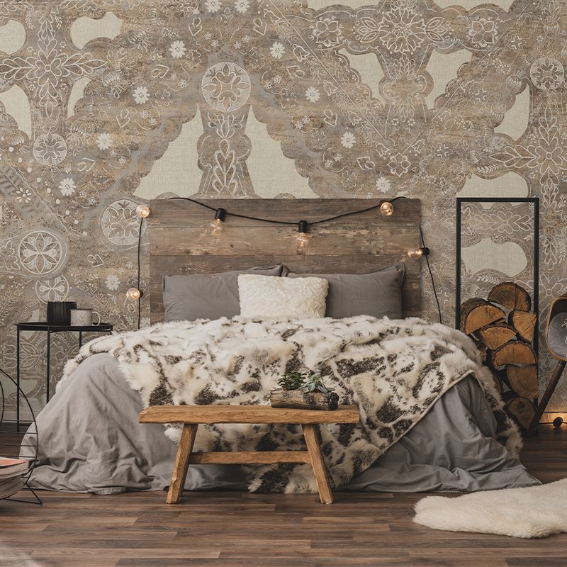 Statornicie este un model de tapet cu un design unic, care combină textura rustică a lemnului cu un model elegant de dantelă. Culoarea neutră a tapetului îl face o alegere versatilă pentru orice cameră, de la dormitor la living. Acest tapet este perfect pentru cei care doresc să creeze o atmosferă caldă și primitoare în casa lor.