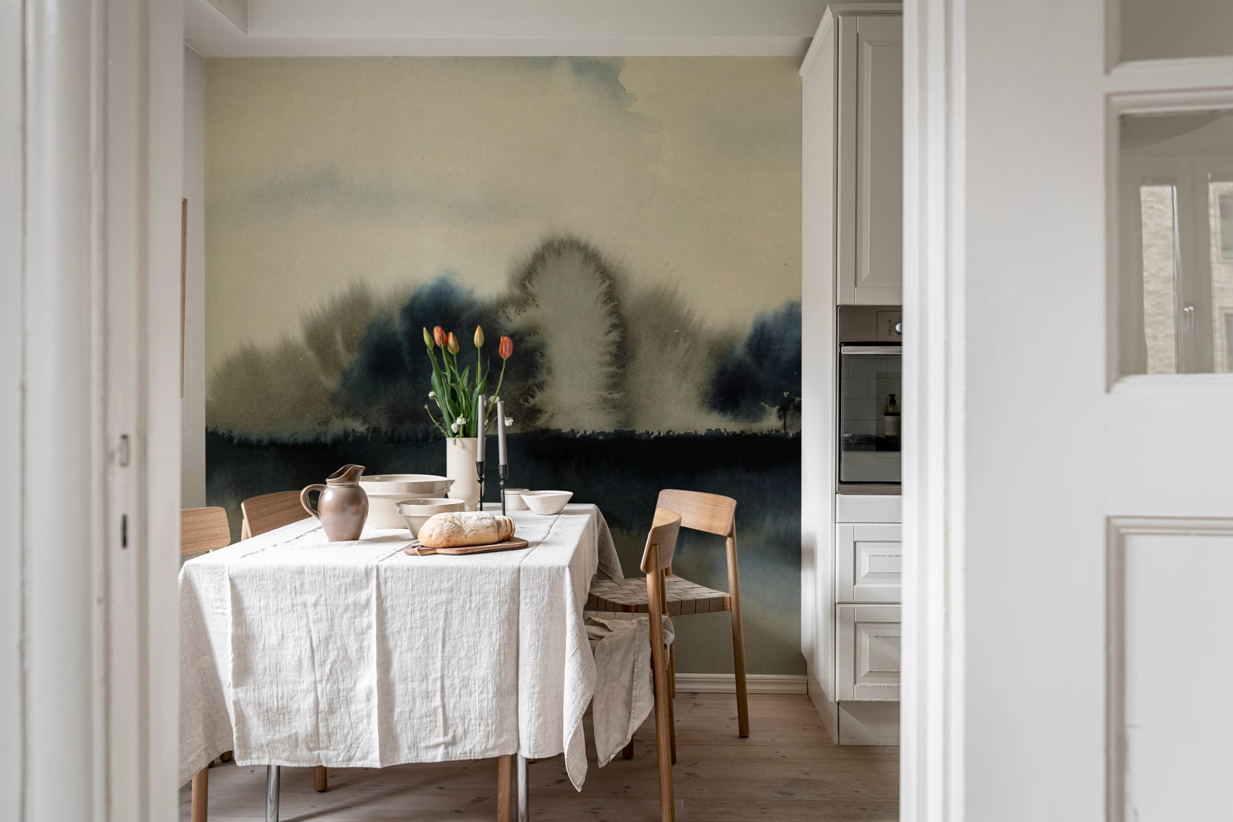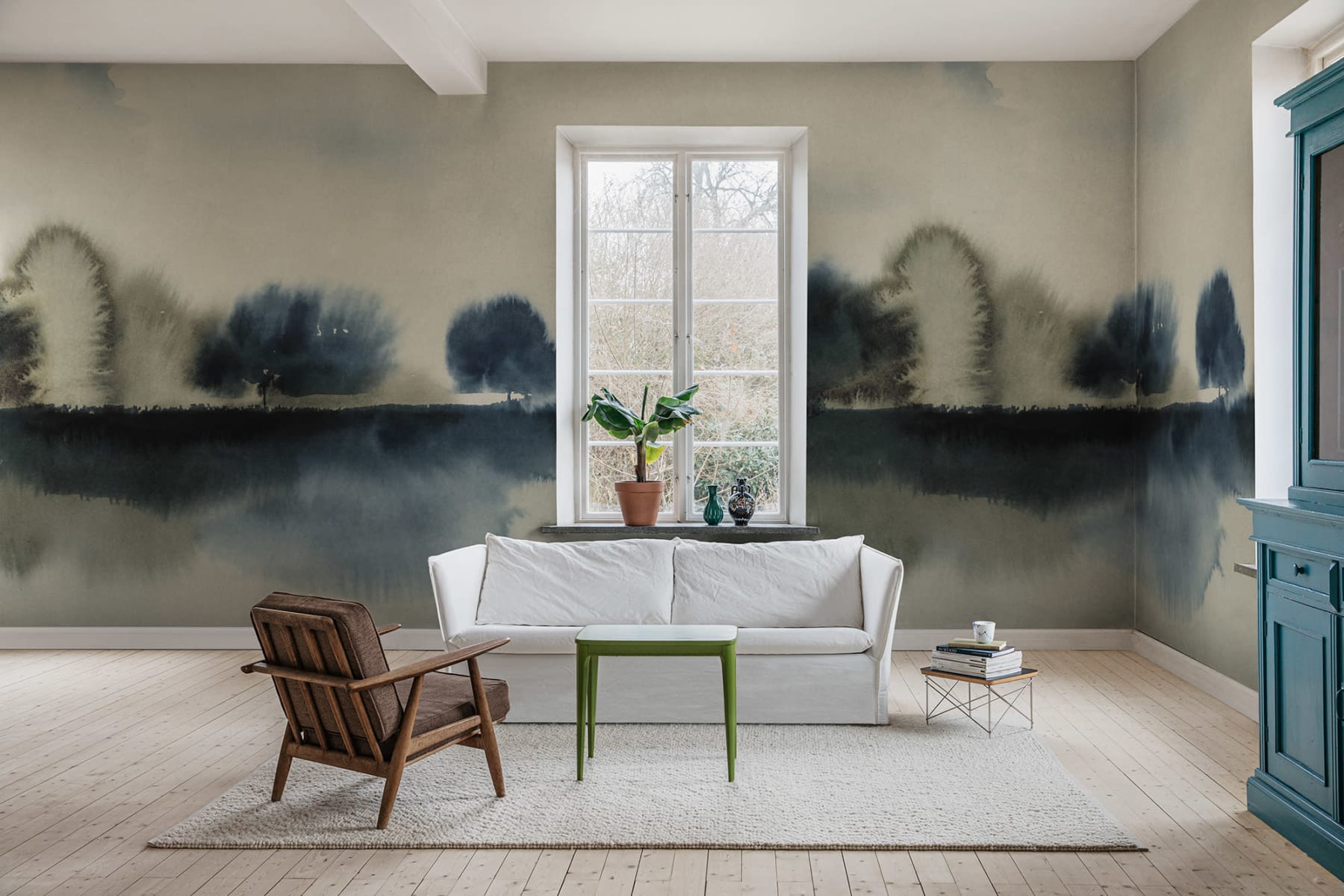 Această acuarelă de vis te transportă într-un frumos peisaj pictat și reflexiile sale. Tușele delicate și nuanțele eterice creează o atmosferă zen în casa ta. Paleta de culori Blue prezintă nuanțe poetice în albastru și maro.
