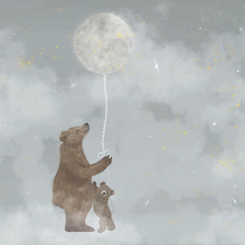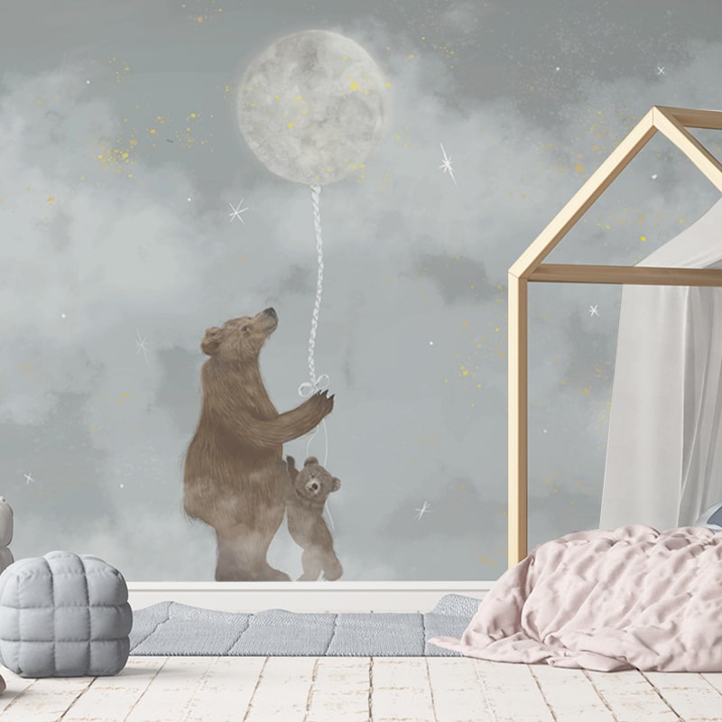 Storytime Pastel este un tapet cu un design delicat, perfect pentru o cameră de copil. Reprezintă un urs și puiul lui, care se țin de un balon în formă de lună, înconjurați de stele și nori pufoși. Culorile pastelate și motivele delicate creează o atmosferă calmă și relaxantă, ideală pentru a transforma camera copilului tău într-un spațiu magic și visător. Tapetul Storytime Pastel este o alegere excelentă pentru a crea o oază de vis și relaxare în camera copilului tău.