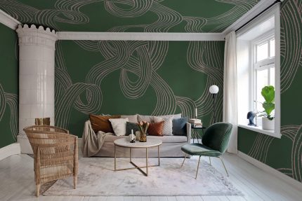 Acest tapet cu model repetabil aduce un suflu nou și o senzație de spațiu deschis. Liniile ondulate în nuanțe delicate de mentă creează un efect vizual calmant și elegant.