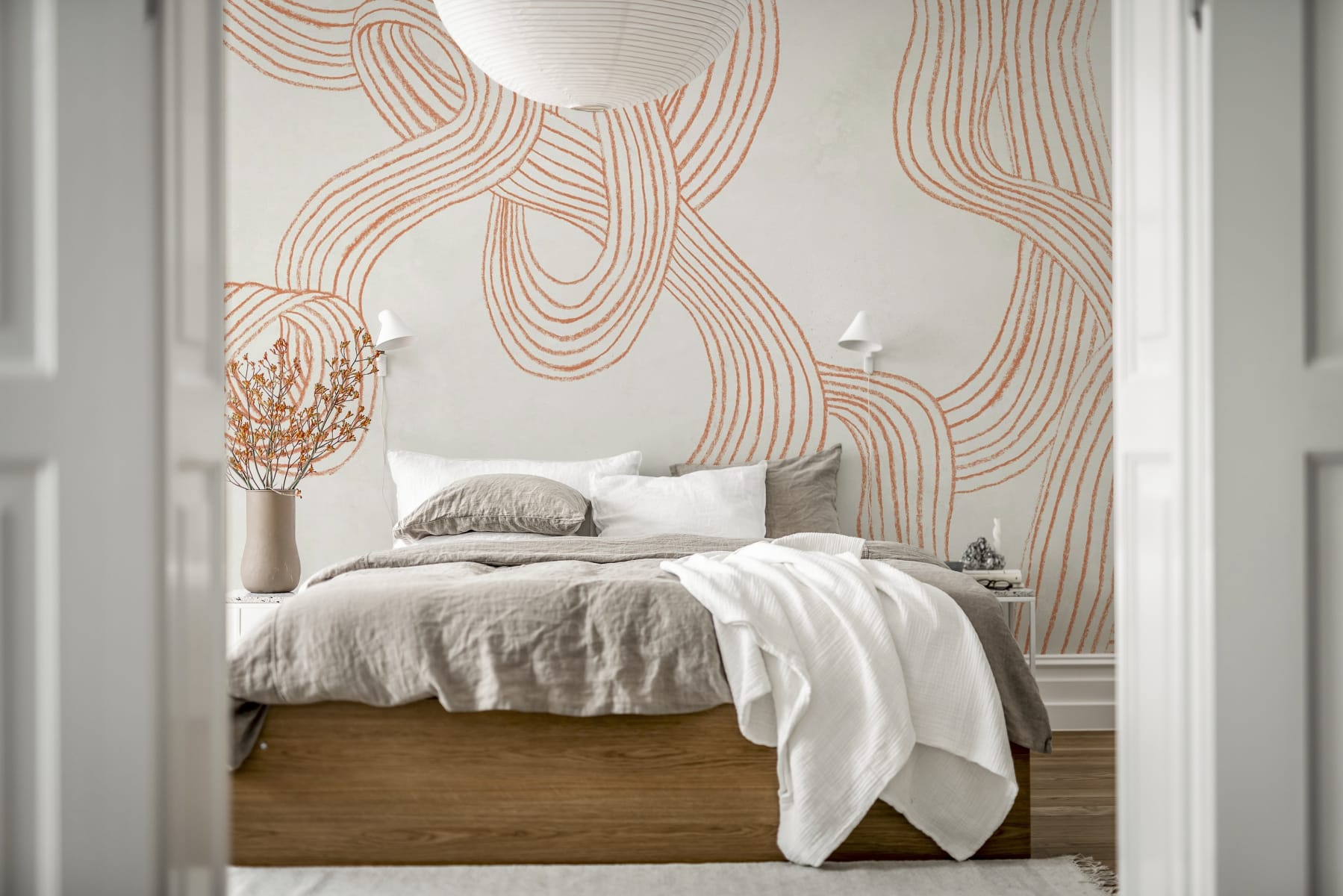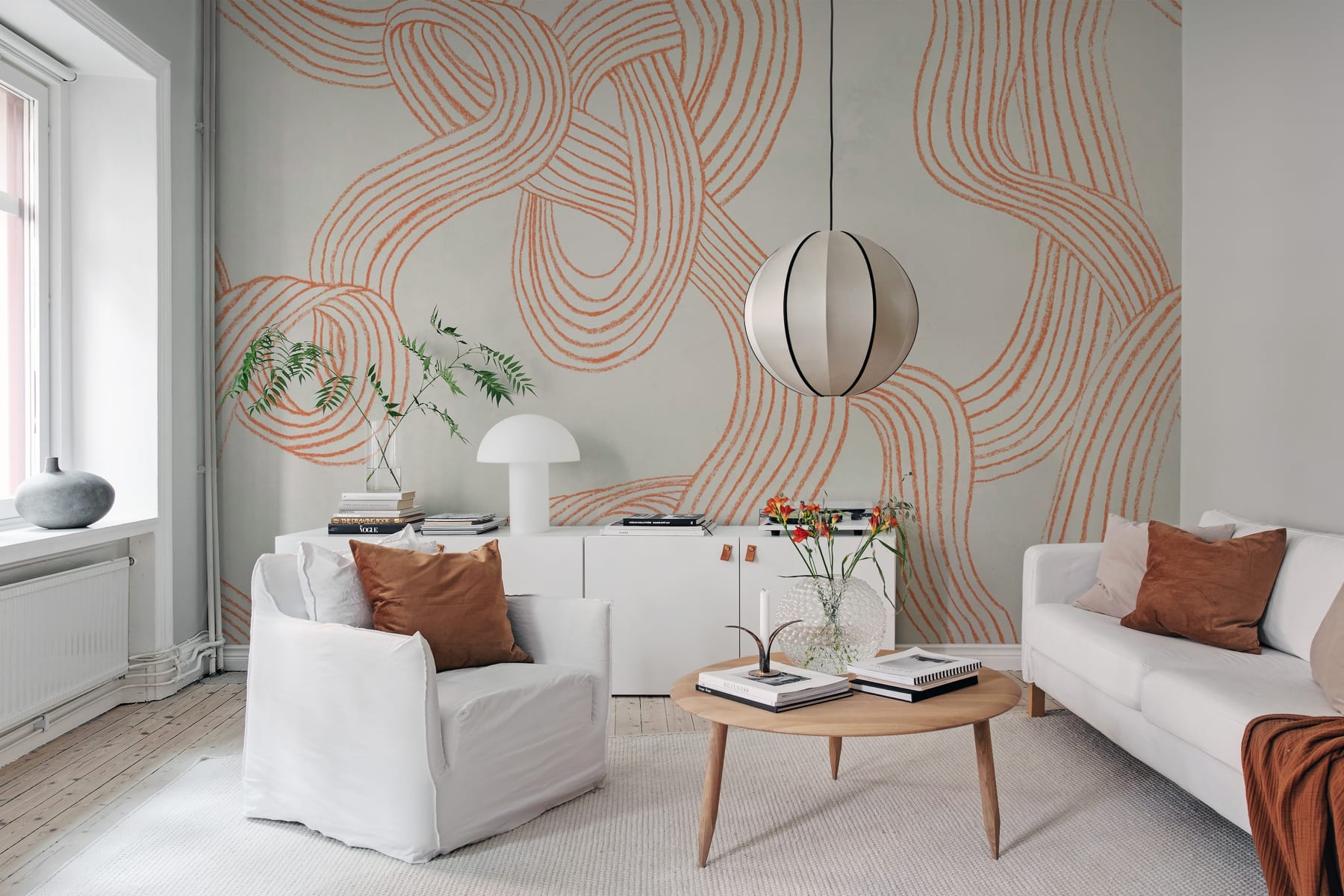 Faceți o declarație îndrăzneață cu dungi frumos curgătoare. Dungile sunt perfecte pentru a crea un aspect organic și artistic în spațiul dumneavoastră. Această versiune a dungilor noastre populare este complet repetabilă. Schema de culori Orange are o bază în bej cald, deschis și linii portocalii.