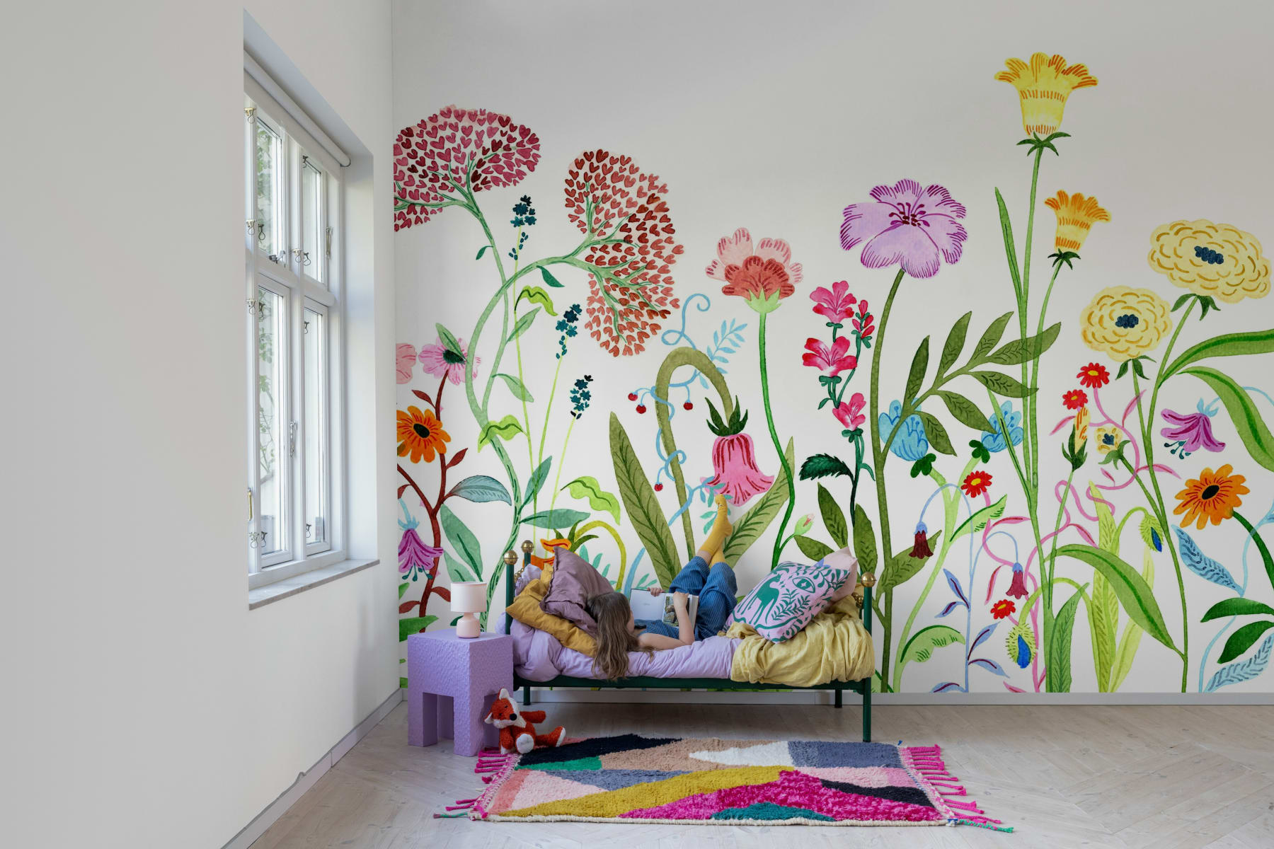 Îmbogățește-ți pereții cu flori vibrante într-o pajiște pitorească. Acest aquarelle pictat manual este perfect pentru a aduce căldura și bucuria verii în casa ta pe tot parcursul anului. O frumusețe la scară largă, care creează ascunzătoarea ideală pentru jocuri creative și vise. Summerfield, Multi, vine în nuanțe de verde vibrant, roz, liliac, albastru, roșu și portocaliu pe o bază albă.