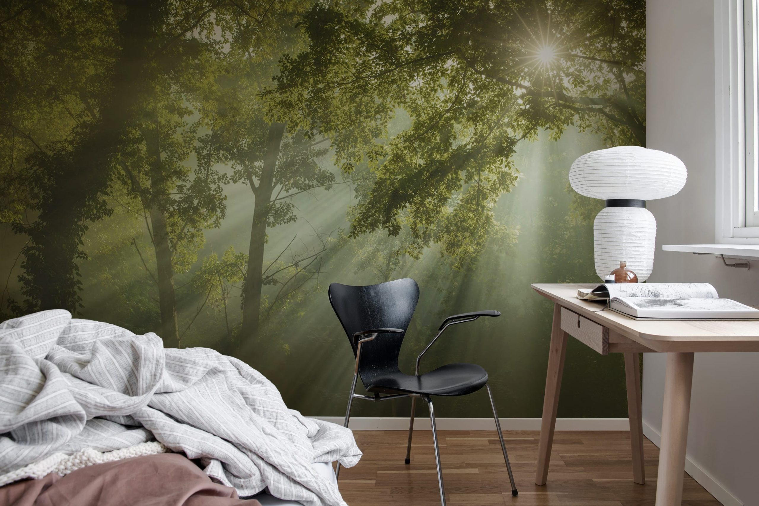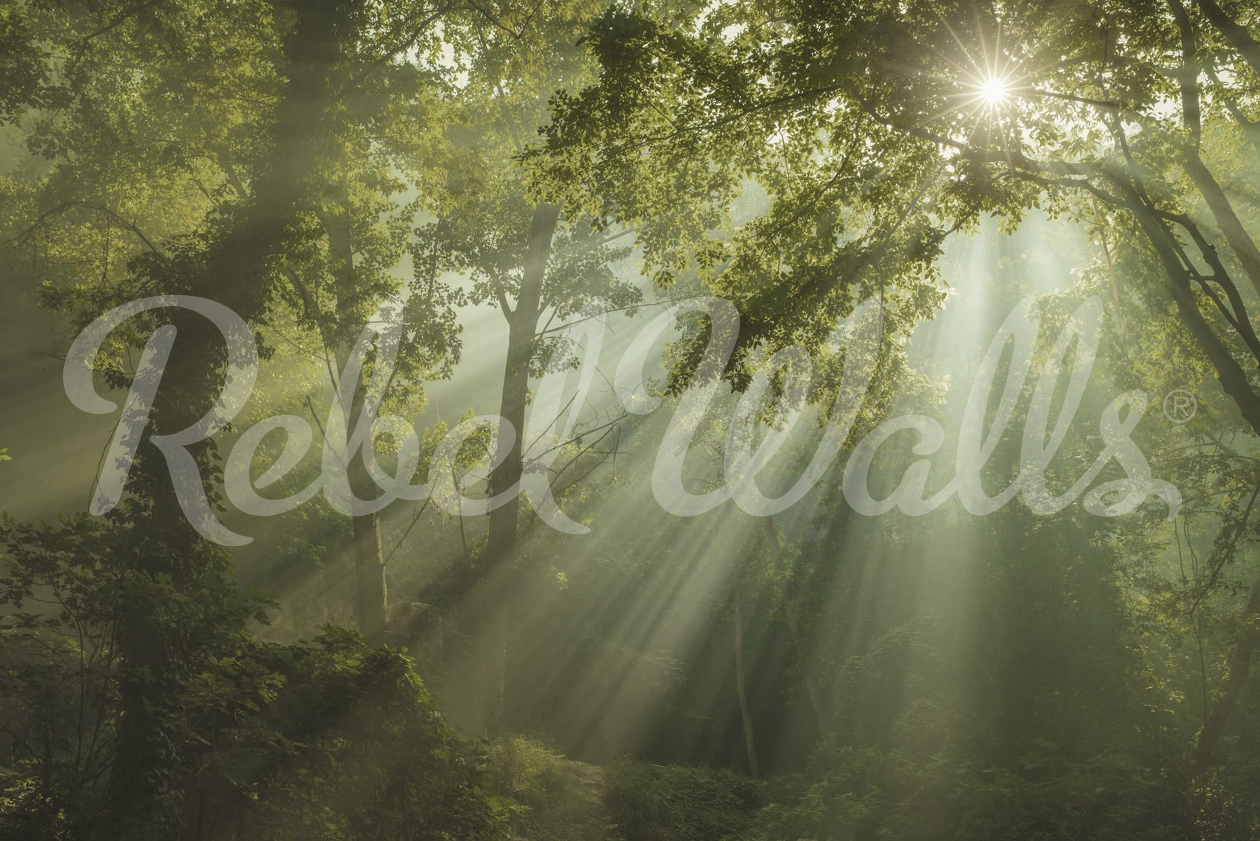 Invitați căldura și frumusețea naturii în spațiul dvs. cu tapetul Sun Rays. Acest design uluitor capturează razele eterice ale soarelui care străpung o pădure verde luxuriantă.