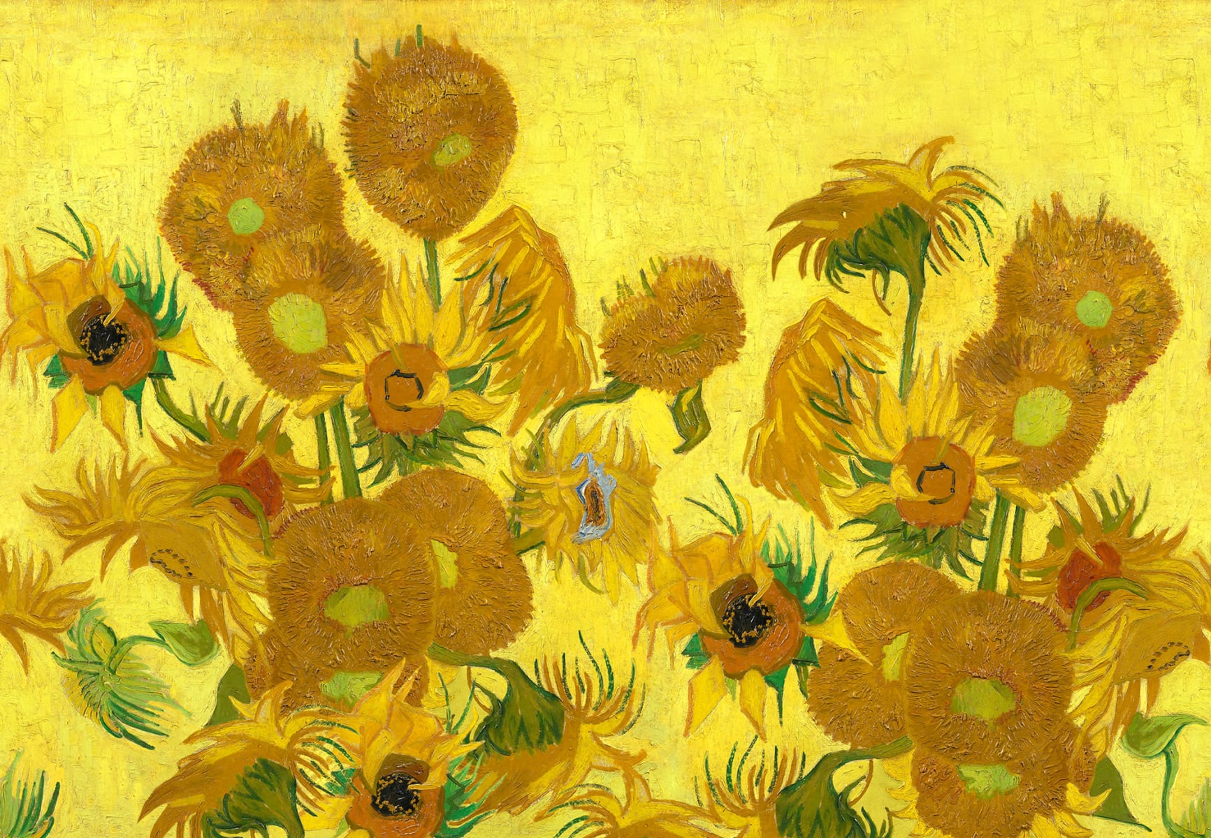 Sunflowers Repeatable, Yellow, este o versiune de tapet repetabil inspirată de florile din faimoasa operă de artă Sunflowers de Van Gogh. Această versiune prezintă floarea-soarelui de un galben vibrant care îmbracă cu îndrăzneală pereții.