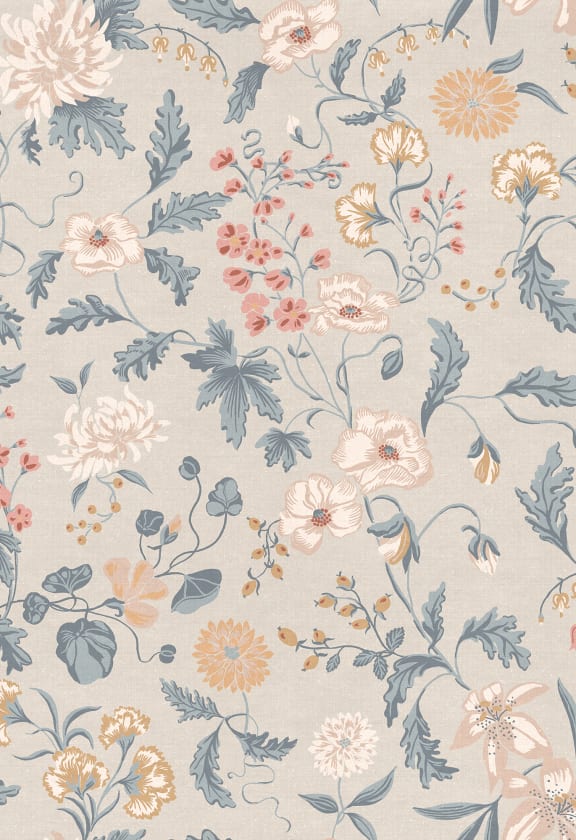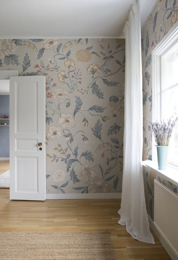 O abundență de flori încântătoare. O versiune mărită a tapetului “Till Karin” și o minunată abundență de flori pictate manual.