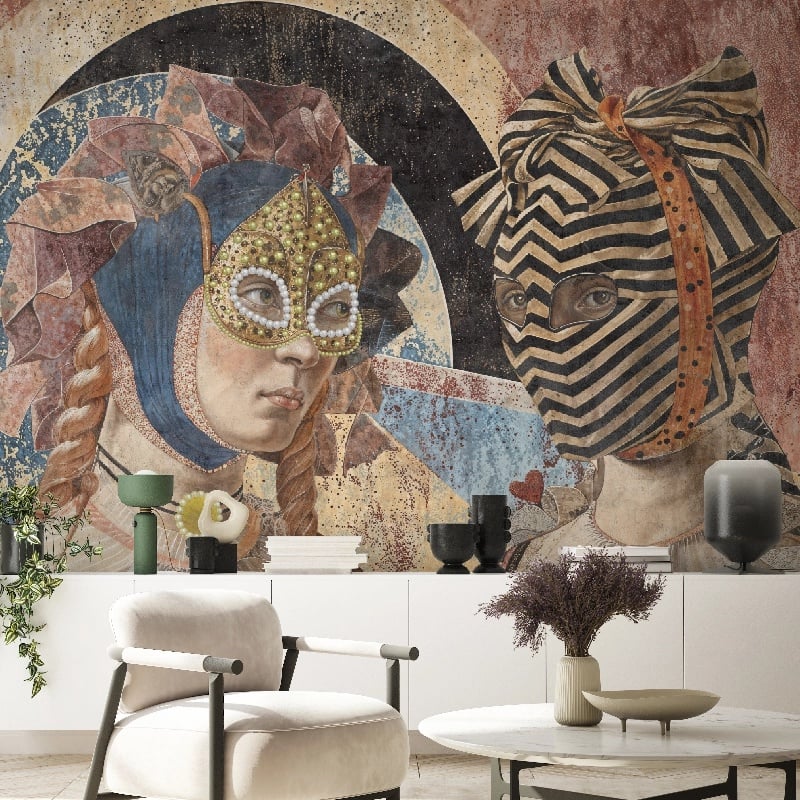 Modelul de tapet Synastry a fost desenat pentru a putea observa, constienti fiind, cum arata relatiile prin prisma planului subconstient. Acest tapet ce poarta marca House of VLAdiLA iti ofera o privire profunda in dinamica invizibila a conexiunilor noastre. Synastry te invita, deci, sa explorezi straturile ascunse ale emotiilor si interactiunilor interpersonale. Capodopera ce abunda de simbolism si abstractizare, modelul de tapet Synastry aduce in prim plan doua personaje mascate, asemenea majoritatii actorilor din aceasta colectie. Formele fluide si liniile curgatoare se impletesc intr-o compozitie complexa, evocand un peisaj mental in continua schimbare. Elementele grafice, variate si interconectate, precum si limbajul nonverbal al personajelor reprezinta diversele aspecte ale relatiilor, de la atractia initiala la legaturile profunde si durabile, dar si la tensiunile si conflictele inerente. Creat pentru a dezvalui frumusetea si complexitatea relatiilor umane prin prisma planului subconstient, modelul de tapet Synastry a fost desenat pentru pereti-arta care invita la contemplare si cunoastere.