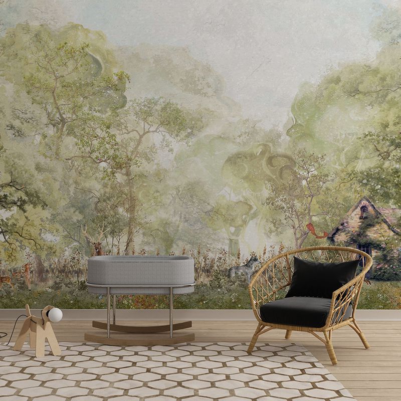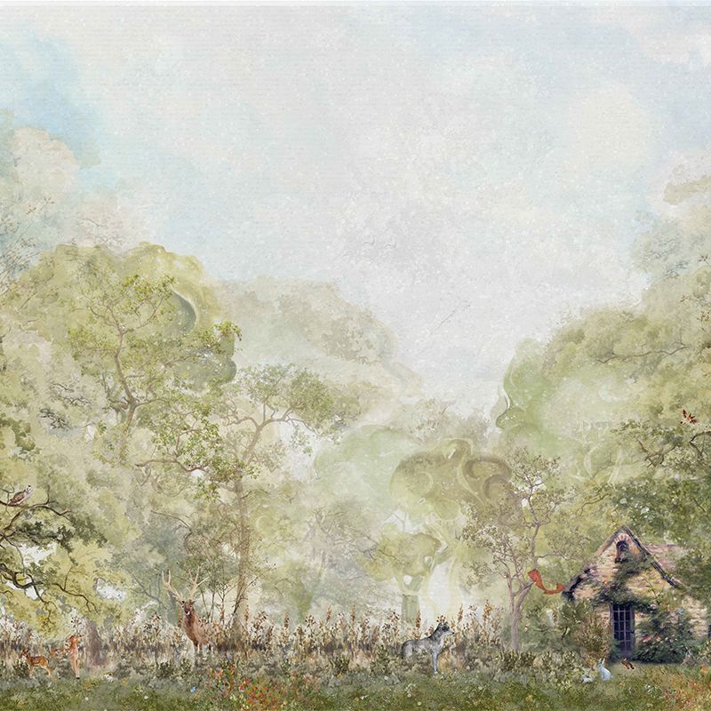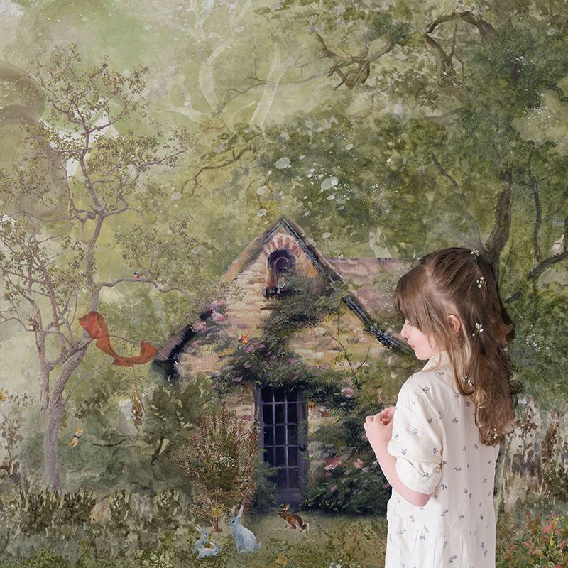 Un tapet cu un design fantastic, Tales of the Forest, te transportă într-o lume magică. Imaginea ilustrează o căsuță cochetă, ascunsă în mijlocul unei păduri luxuriante. Florile colorate și o fetiță cu o privire curioasă adaugă un plus de farmec și mister. Alege acest tapet pentru a transforma orice cameră într-un colț de poveste!