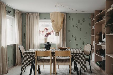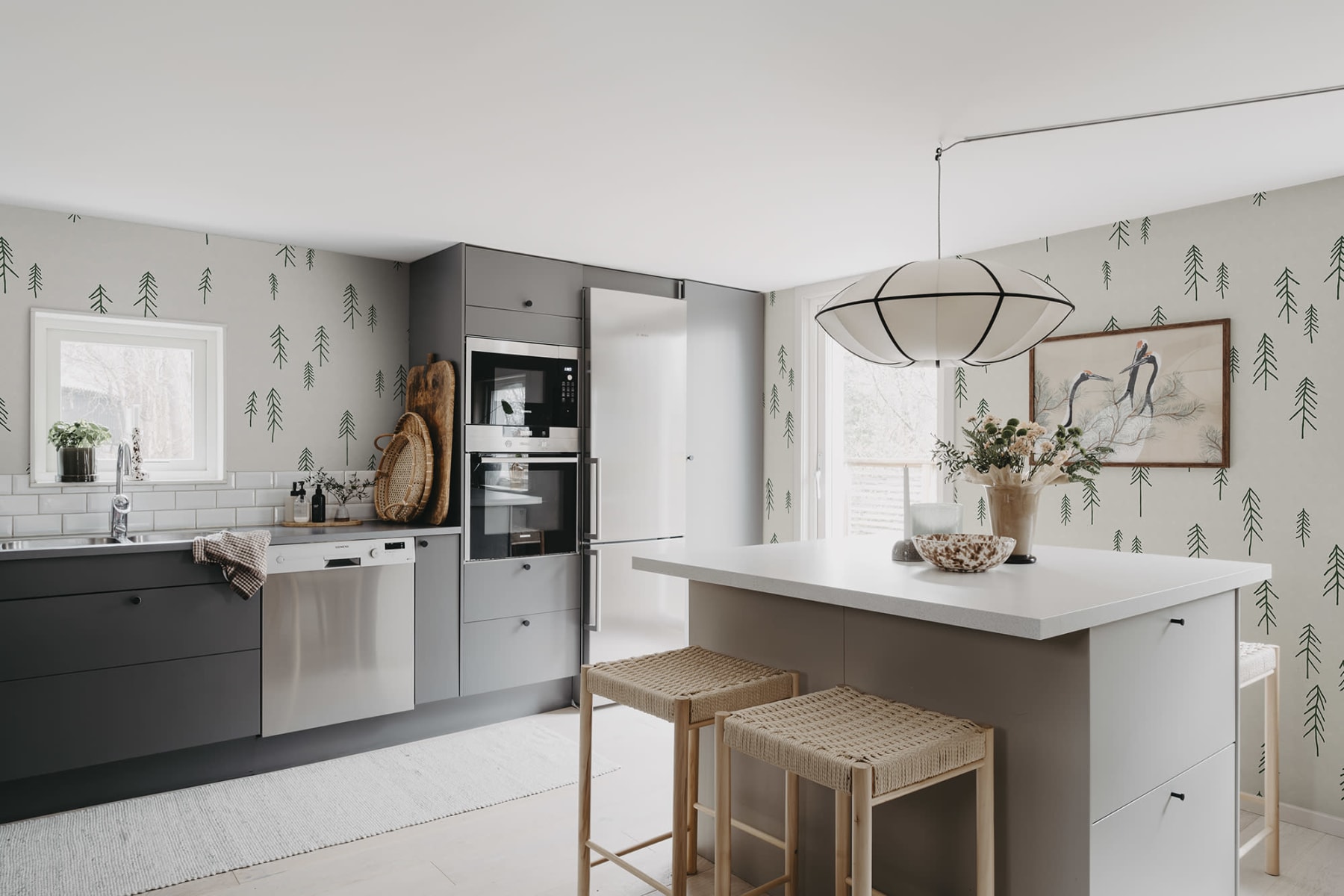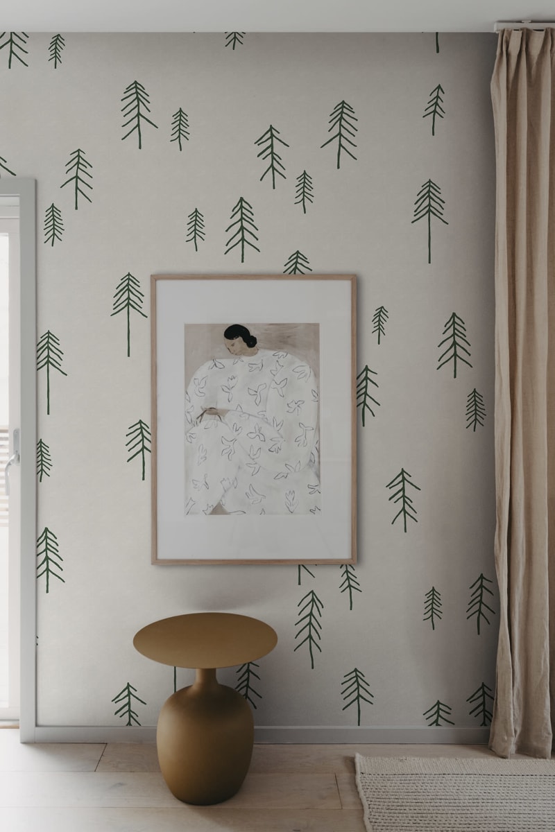 Pășește într-o lume de eleganță naturală cu tapetul Tall. Acest design eteric prezintă copaci înalți și grațioși, captând artistic frumusețea serenă a unei păduri și aducând-o în spațiul tău de locuit. Fiecare detaliu este desenat manual cu meticulozitate, evidențiind angajamentul Fine Little Day față de măiestrie și estetica lor scandinavă distinctivă. Varianta Tall, Green aduce natura în interior, reflectând vitalitatea și creșterea frunzișului de primăvară. Este perfect pentru a energiza orice spațiu cu o explozie de culoare naturală.