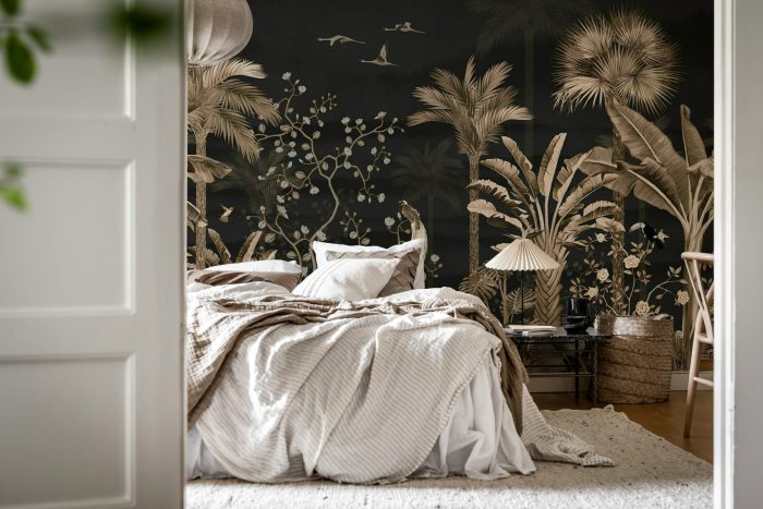 Pășește în lumea întunecată și dramatică a tapetului Magnolia Jungle, Black. Acest tapet captivant prezintă o junglă luxuriantă și densă, adusă la viață pe un fundal negru profund, evidențiind strălucirea magnoliilor albe și misterul siluetelor de palmieri umbriți. Ideal pentru crearea unui perete de accent izbitor, aduce un sentiment de adâncime și intrigă în orice spațiu. Contrastul dintre fundalul întunecat și accentele florale vii face ca acest design să fie nu doar o desfătare vizuală, ci și o piesă de declarație în decorul casei tale.