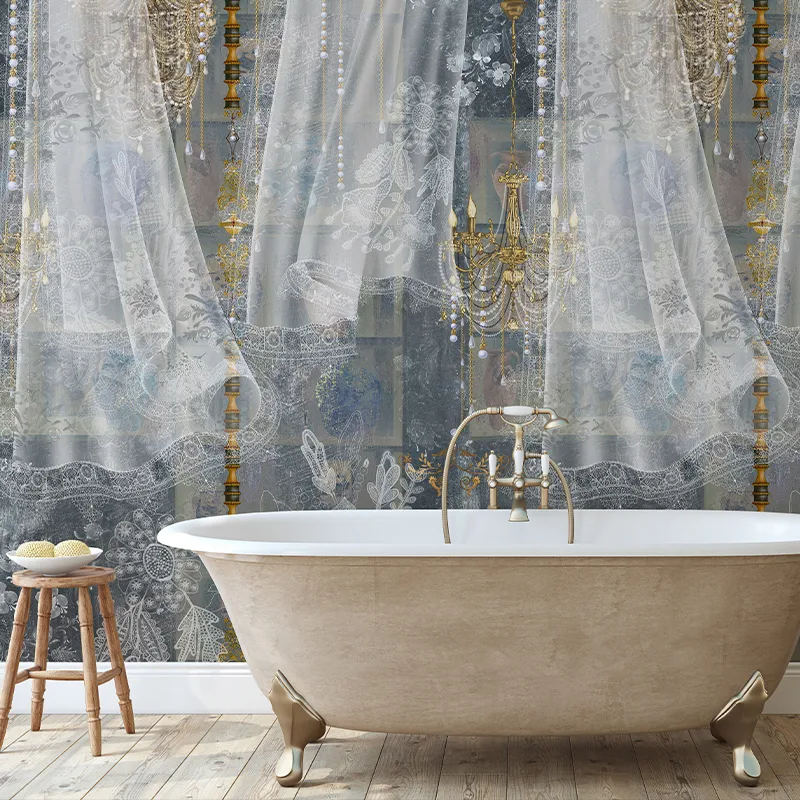 Tapetul Tea House (Chicory) face parte din colecția Stella Maris, o serie de printuri inspirate de cea mai frumoasă regină, Maria de Romania. Fiecare model spune câte o poveste aflată la granița dintre tradițional și artă, îmbogățită de designerii VLAdiLA cu simboluri ale monarhiei, alături de ornamente ce amintesc de bijuteriile, țesăturile și broderiile regale. Stella Maris e o colecție metaforă, iar fiecare model a fost atent creat pentru a satisface nevoia de spectacol a oamenilor, dorința de a accede către un univers personal al impresionantului, al rafinamentului și al bunului gust.