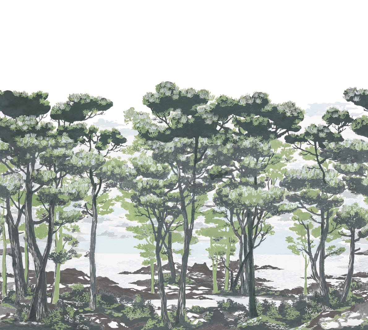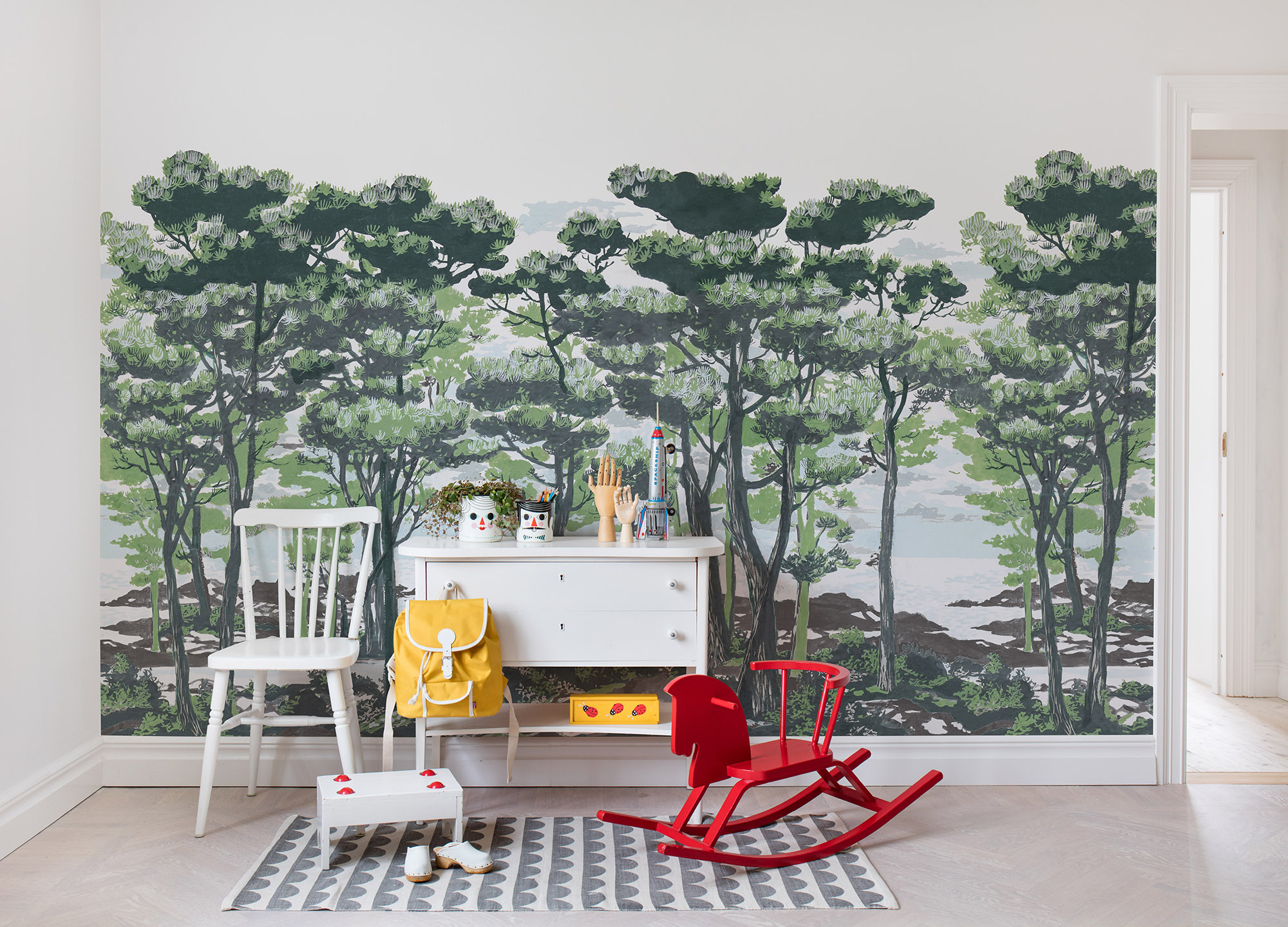 Acest fototapet aduce aminte de secrete și umbre, și este inspirat de pădurea fermecată acolo unde creaturile magice pășesc ușor pe patul de ferigi. Acest design care se repetă poate fi folosit în întreaga cameră pentru a crea un efect puternic.