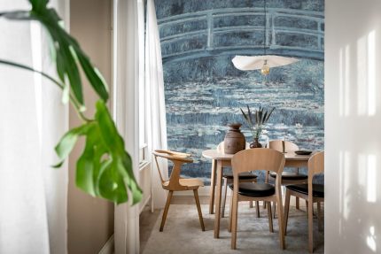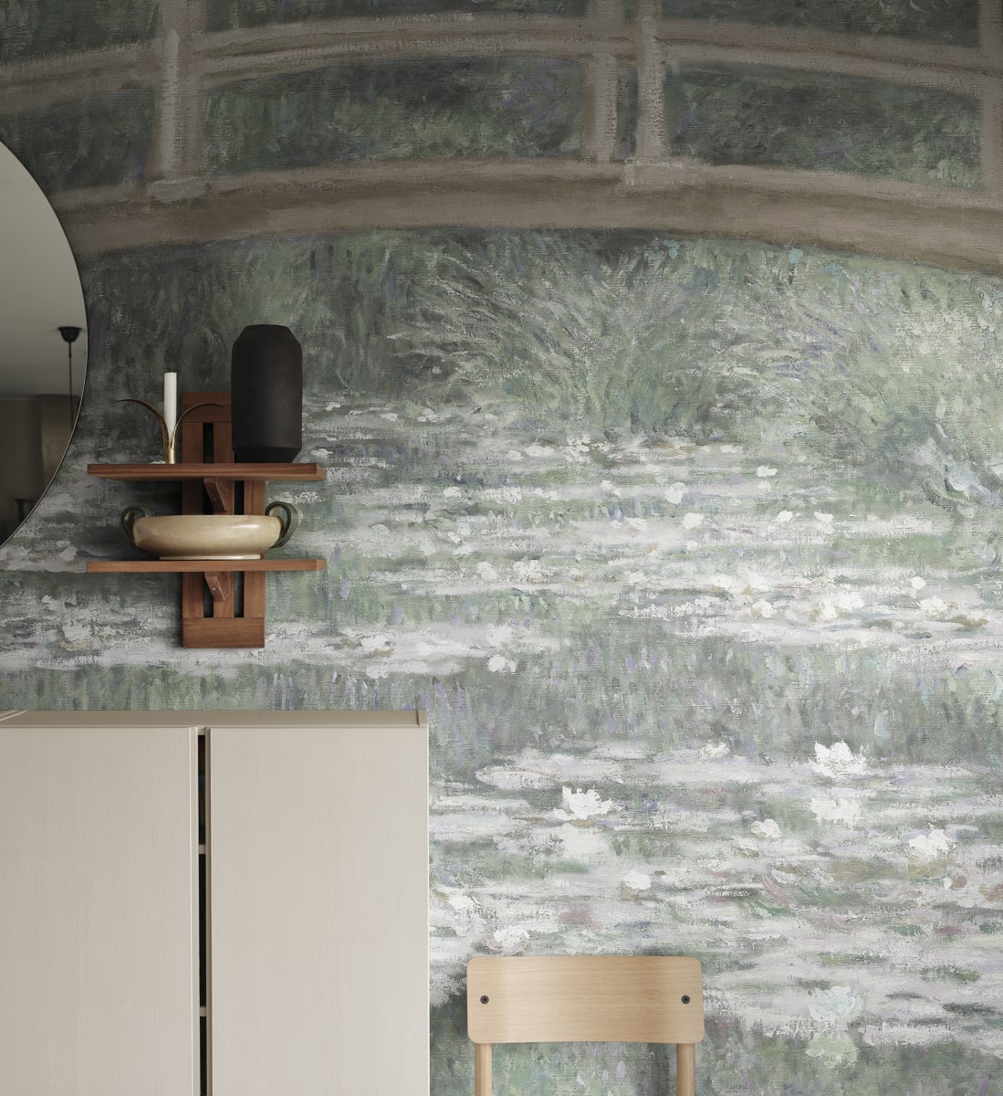 The Japanese Footbridge, Soft, este o versiune extraordinară de tapet a uneia dintre cele mai celebre lucrări de artă ale lui Claude Monet, The Japanese Footbridge. Motivul prezintă fascinația profundă a lui Monet pentru lumină, apă și reflexie și evoluția sa către un stil mai abstract, impresionist. Varianta Soft vine în verde pal și alb.