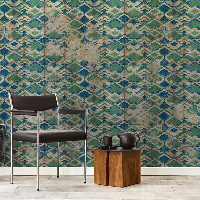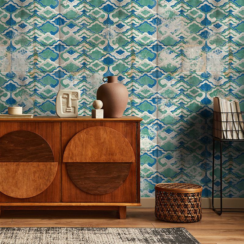 Adăugați un strop de stil retro în decorul casei dumneavoastră cu acest tapet cu un design unic, inspirat din arta tradițională. Combinația de nuanțe de albastru și verde, alături de un aspect vintage, va adăuga personalitate și profunzime spațiului dumneavoastră. Ideal pentru a crea un accent dramatic în living, dormitor sau hol.
