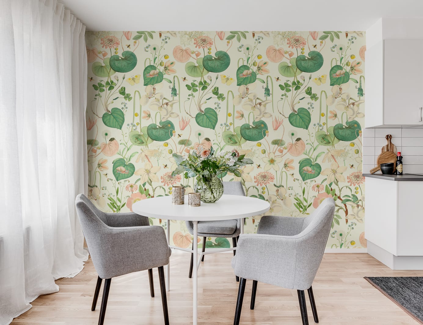Petale transparente, o paletă delicată de culori și linii desenate cu grijă surprind activitatea sălbatică dintr-o livadă în timpul primăverii și al verii. Aproape auzi bâzâitul albinelor în florile merilor și ale măceșilor, florilor de nu-mă-uita, nuferilor, măcrișului și hortensiilor.