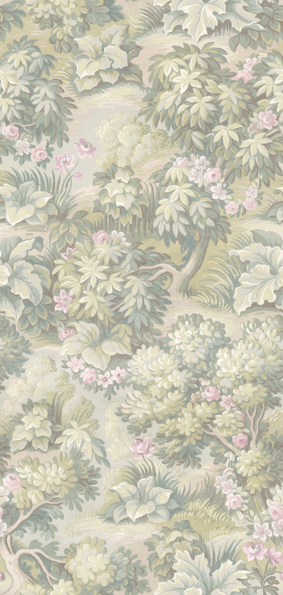 Un original vechi care dezvăluie detalii și o măiestrie uluitoare. Lucrat la perfecțiune de către studioul nostru de design. Verdeața luxuriantă și florile delicate într-un verde pastel proaspăt creează poteci mici care așteaptă să fie descoperite. Răsfățați-vă cu un tapet frumos și ingenios.