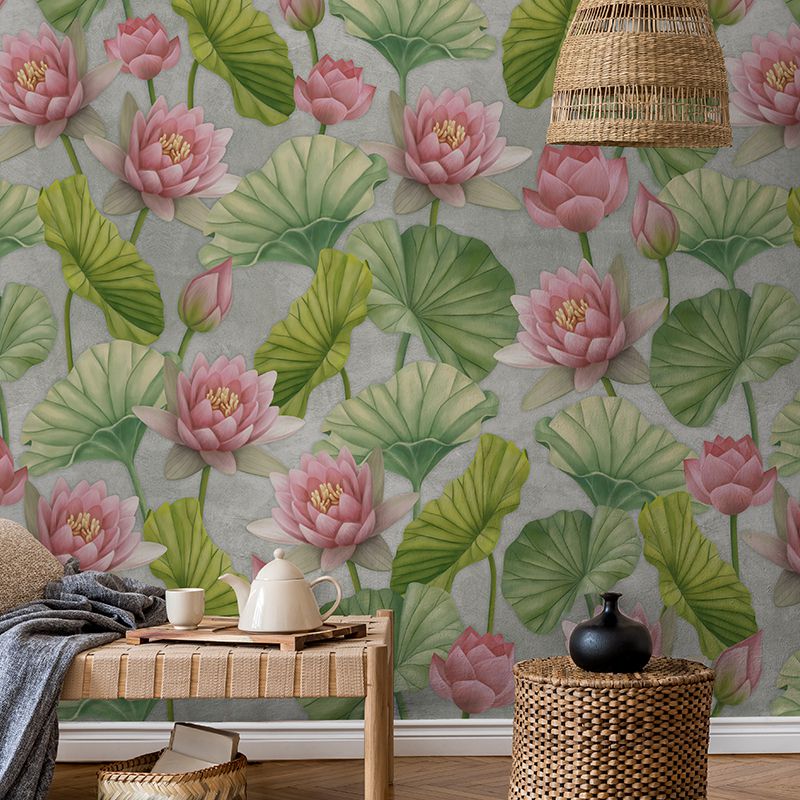 Adauga o nota de eleganta si serenitate in casa ta cu acest tapet cu un design floral minunat. Inspirat de frumusetea naturii, tapetul prezinta un model delicat de flori de nufar roz si frunze verzi luxuriante, create cu o atentie meticuloasa la detalii. Culoarea alba a tapetului ii confera o nota de luminozitate si eleganta, iar textura sa fina ii ofera o senzatie placuta la atingere. Acest tapet este perfect pentru a crea o atmosfera relaxanta si primitoare in orice incapere, fie ca este vorba de dormitor, living sau birou.