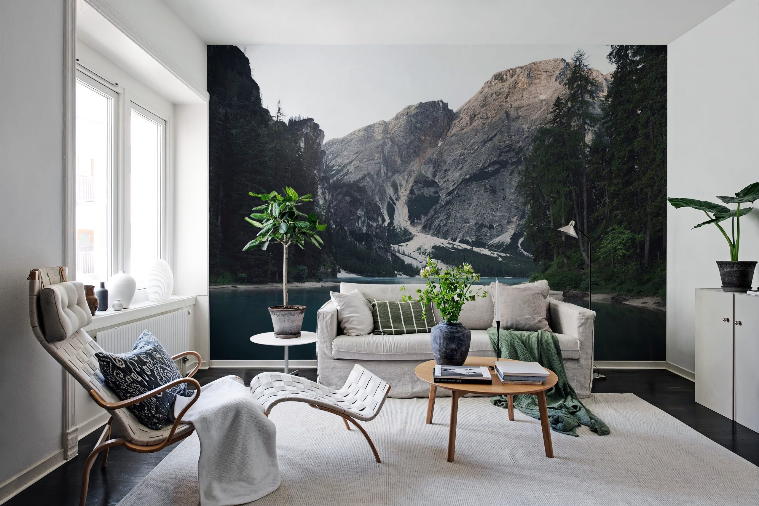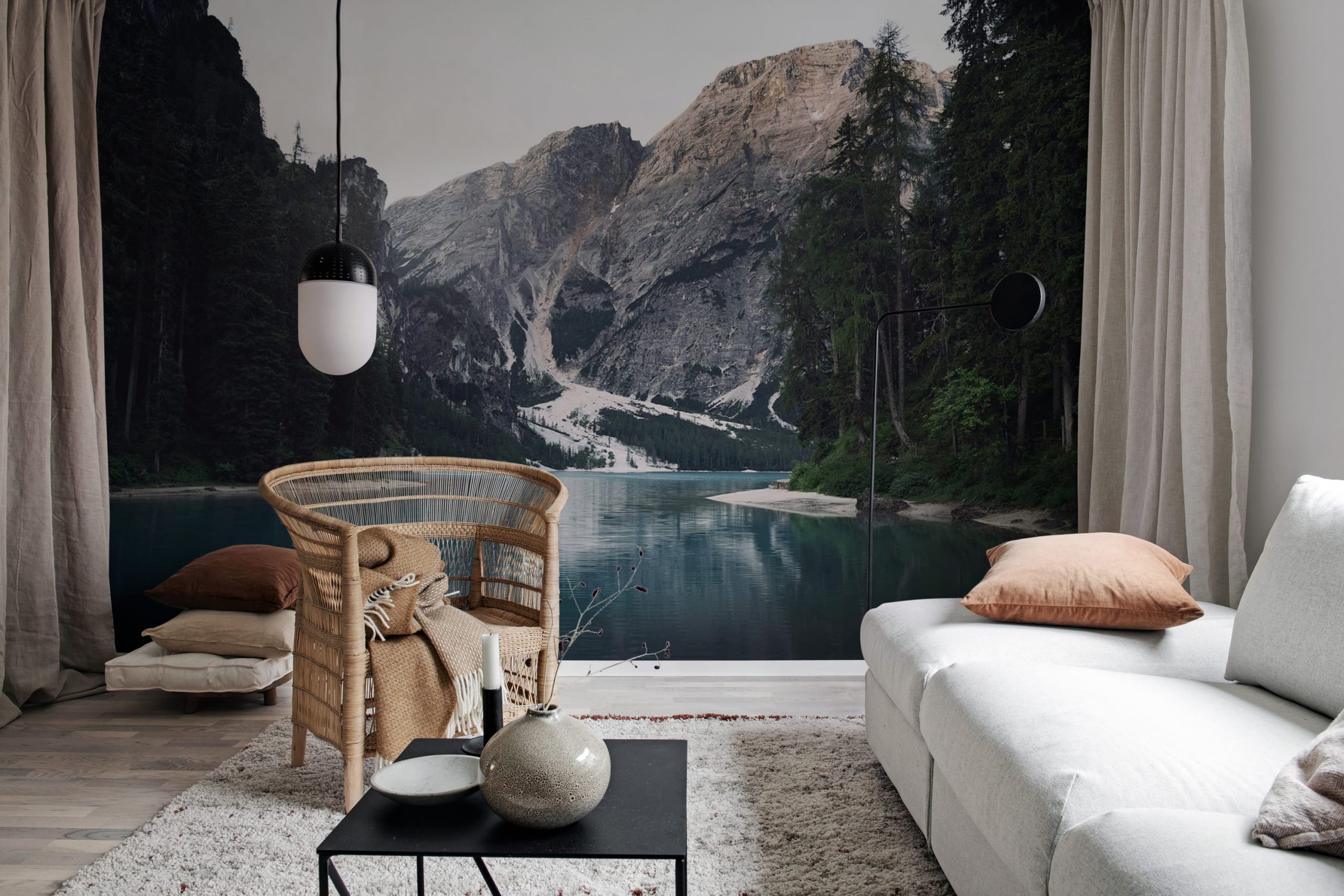 The Valley, Gray prezintă măreția liniștitoare a Lacului Braies și a vârfurilor înconjurătoare. Acest tapet surprinde esența liniștită a văii alpine în nuanțe subtile de gri, perfecte pentru a crea un spațiu calm și relaxat.