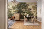 Acest tapet aduce la viață frumusețea mistică a poienii din pădure pe pereții tăi. Umbrele și razele blânde ale soarelui se joacă cu siluetele maiestuoase ale copacilor. O îmbrățișare caldă a pădurii pentru orice spațiu! Gama de culori Green vine în nuanțe verzi și maronii frumoase și luxuriante.