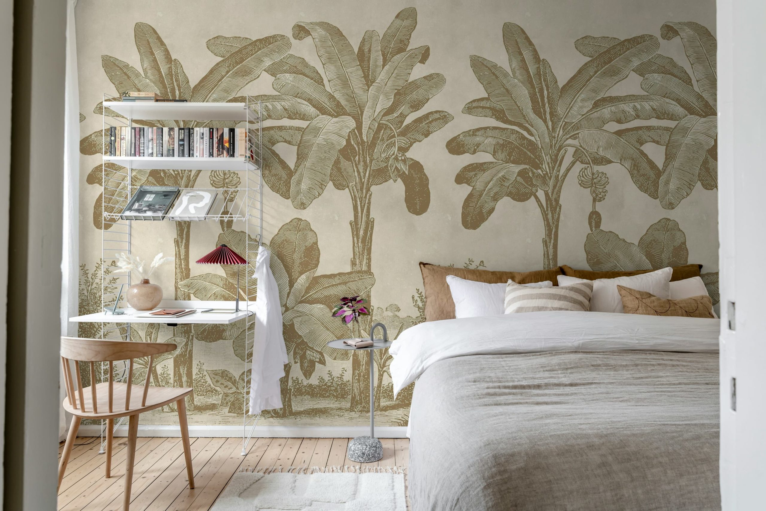 Acest fototapet aduce un strop de exotism și eleganță vintage în orice încăpere. Perfect pentru un living modern sau un dormitor relaxant.