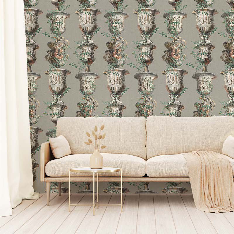 Adaugă o notă de eleganță clasică decorului tău cu Tower of Abundance. Acest tapet cu design elegant prezintă o colecție de vaze ornate, înconjurate de frunze verzi luxuriante, pe un fundal subtil gri. Designul complex și sofisticat creează o atmosferă rafinată, perfectă pentru a completa orice spațiu modern sau tradițional. Tower of Abundance este un tapet perfect pentru a adăuga un strop de lux și sofisticare în livingul tău, dormitor sau hol. Fie că ești în căutarea unui tapet statement sau doar vrei să adaugi un detaliu subtil decorului tău, Tower of Abundance este o alegere excelentă.