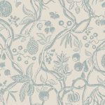 Tapetul Sigfrid blue are un model de frunze dens, care se întinde pe perete și dă camerei un aspect armonios.
