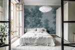 Nori albi, pufoși, pe un cer albastru, într-o imagine pictată parcă în acuarelă. Un fototapet care va oferi o atingere