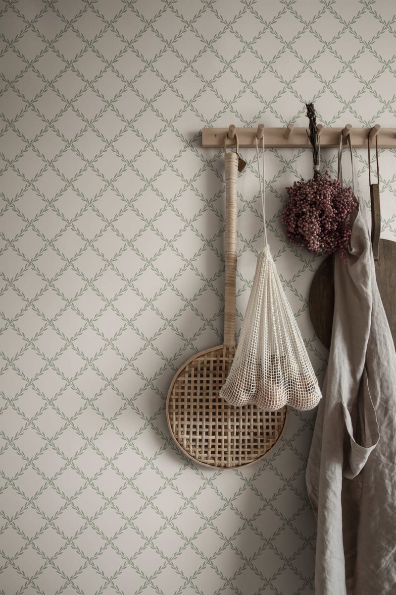 Un adevărat clasic Sandberg din arhiva noastră primește acum o viață nouă în culori noi-nouțe. Imprimeul flexo conferă structură frunzelor. Un model grafic și organic care se potrivește atât în ​​camerele mari, cât și în cele mici, deoarece forma împletiturii de nuiele echilibrează perfect peretele. Tapetul Trellis Forest Green vine cu un model verde pe fundal bej.