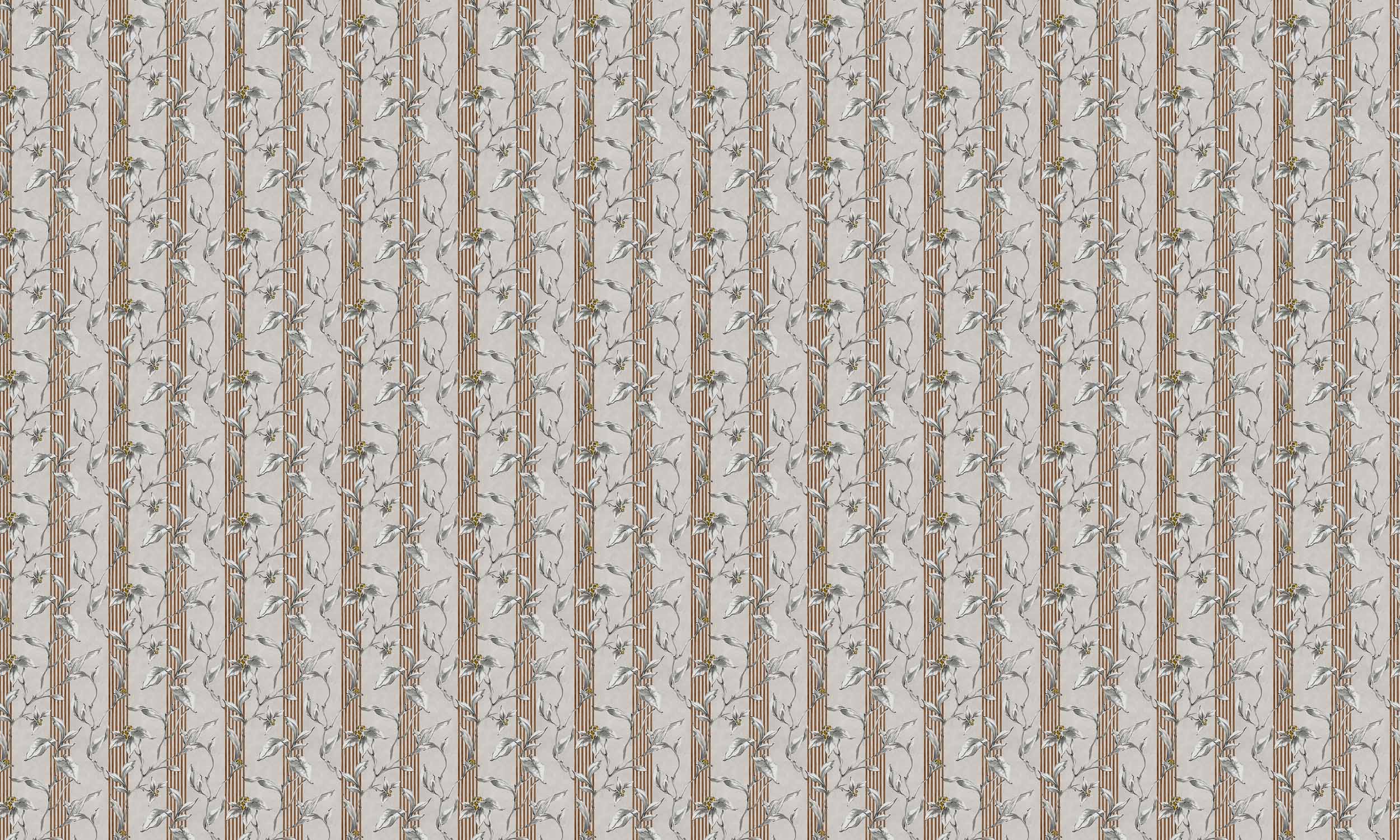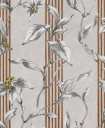 Trepadora, Plata, din colecția Palacio de Cristal, este un tapet de inspirație florală, în tonuri de alb/gri. Ascensiune agilă a ghirlandelor care caută fără teamă lumina puternică a soarelui.