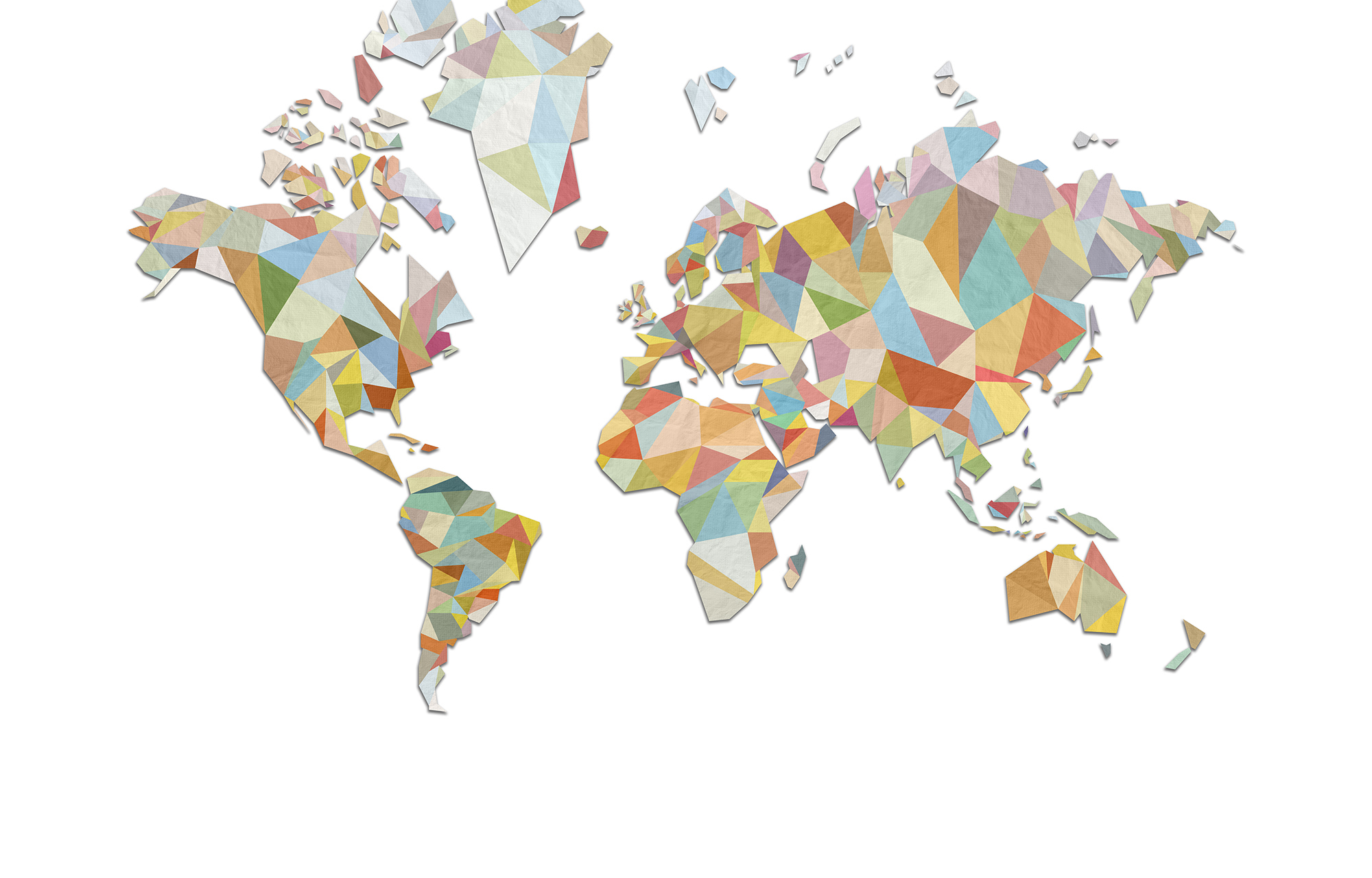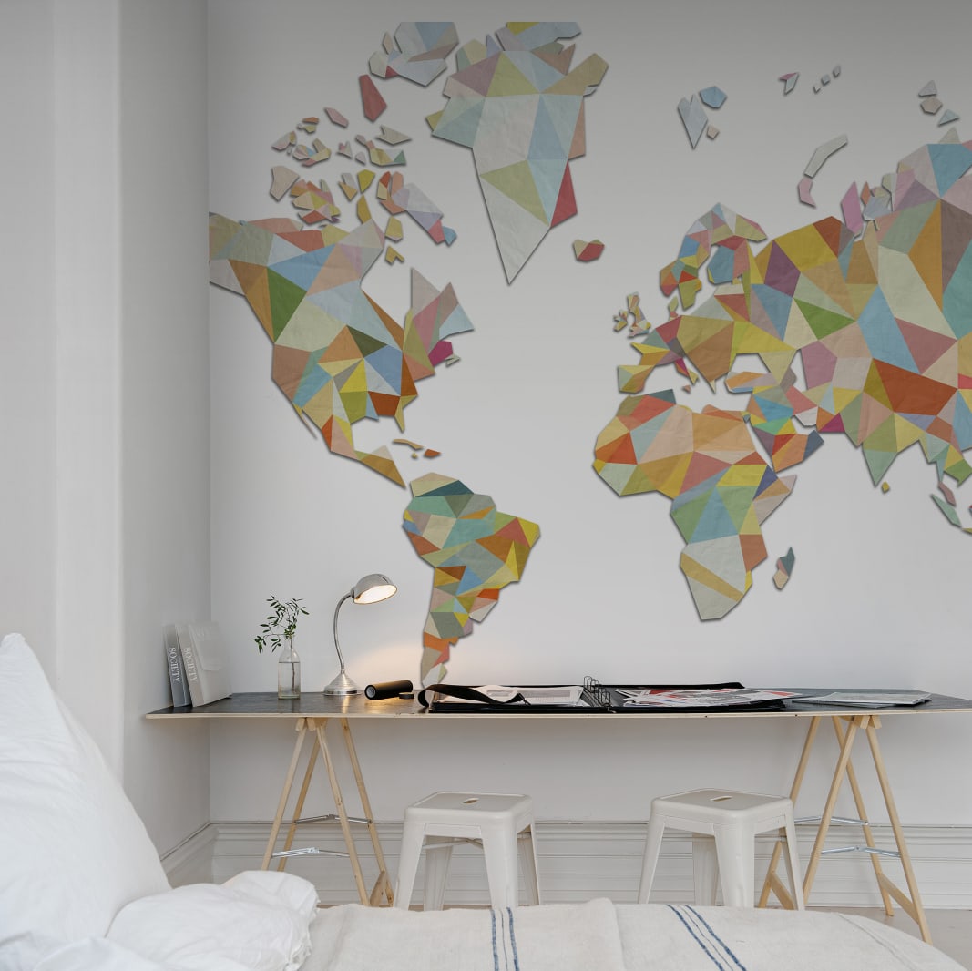 O lume întreagă în casa ta, cu harta Triangle Land, compusă parcă din bucăți de cioburi colorate, într-un model abstract geometric.