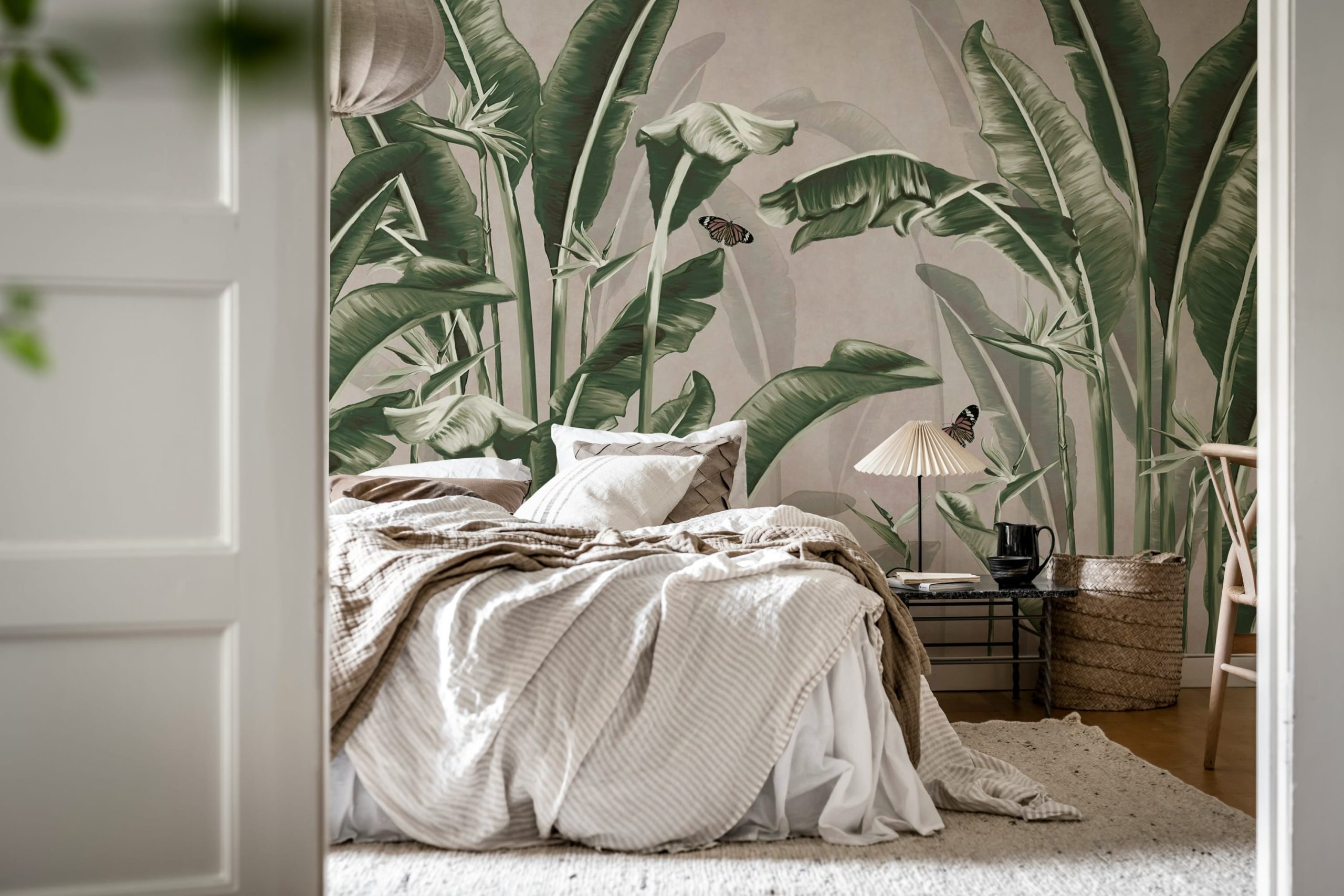 Transformă-ți casa într-o oază tropicală! Acest tapet creează un ambient relaxant, cu frunze luxuriante și detalii subtile. Perfect pentru living, dormitor sau birou. Un colț de natură la tine acasă!