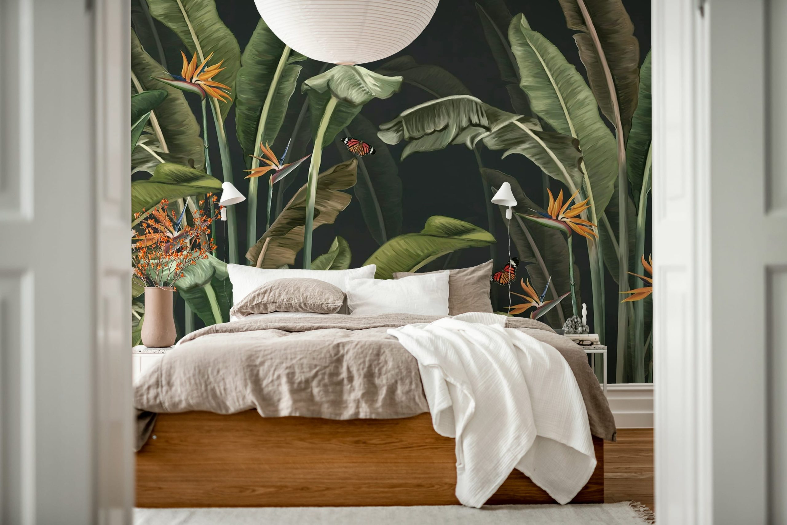 Nuanțele întunecate ale junglei, păsările exotice ale paradisului și fluturii creează o atmosferă misterioasă, dar atrăgătoare. Ideal pentru o evadare îndrăzneață, tropicală.