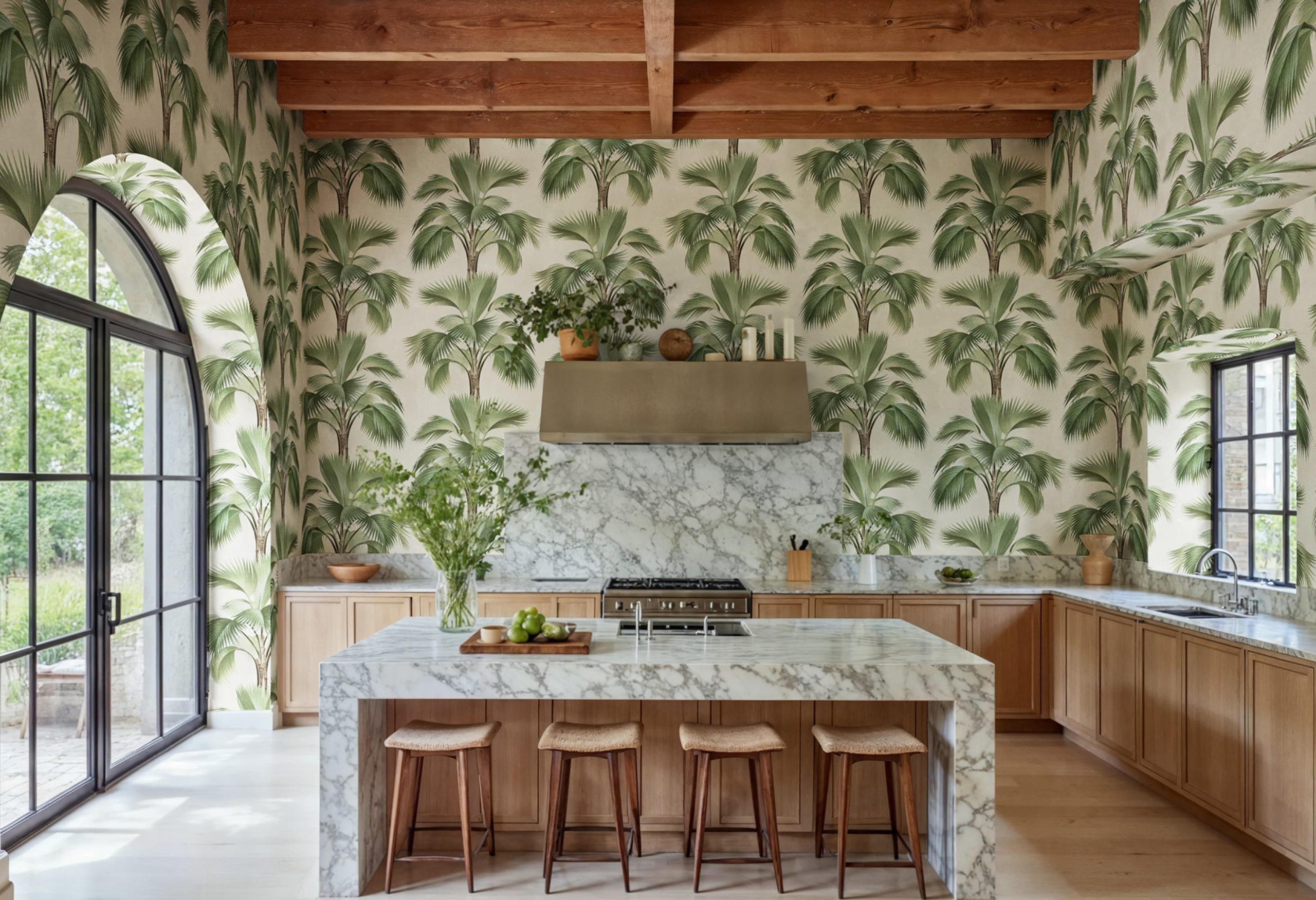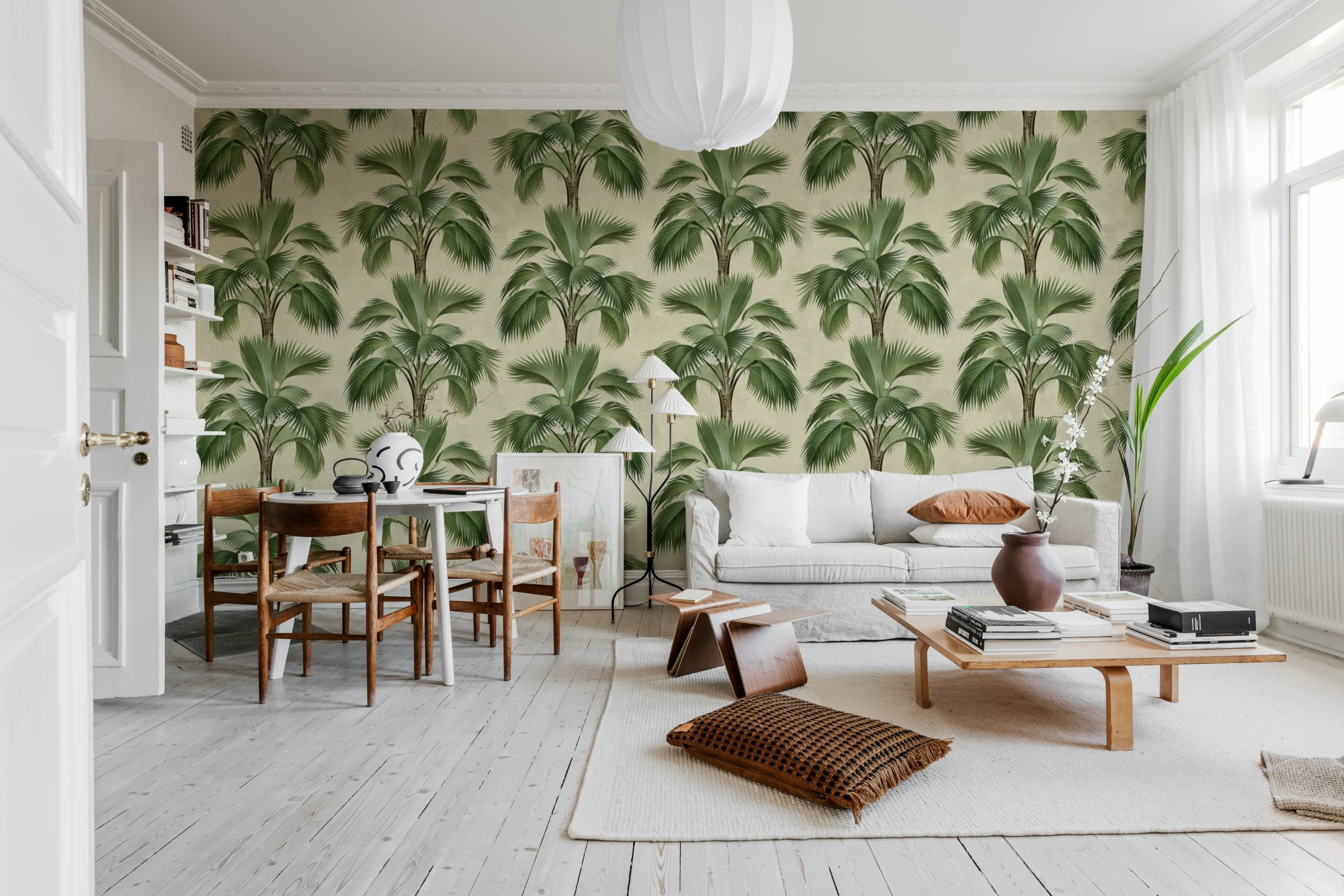 Adaugă o notă tropicală și elegantă spațiului tău cu acest tapet bej cu ritmuri tropicale. Perfect pentru un interior modern și relaxant.