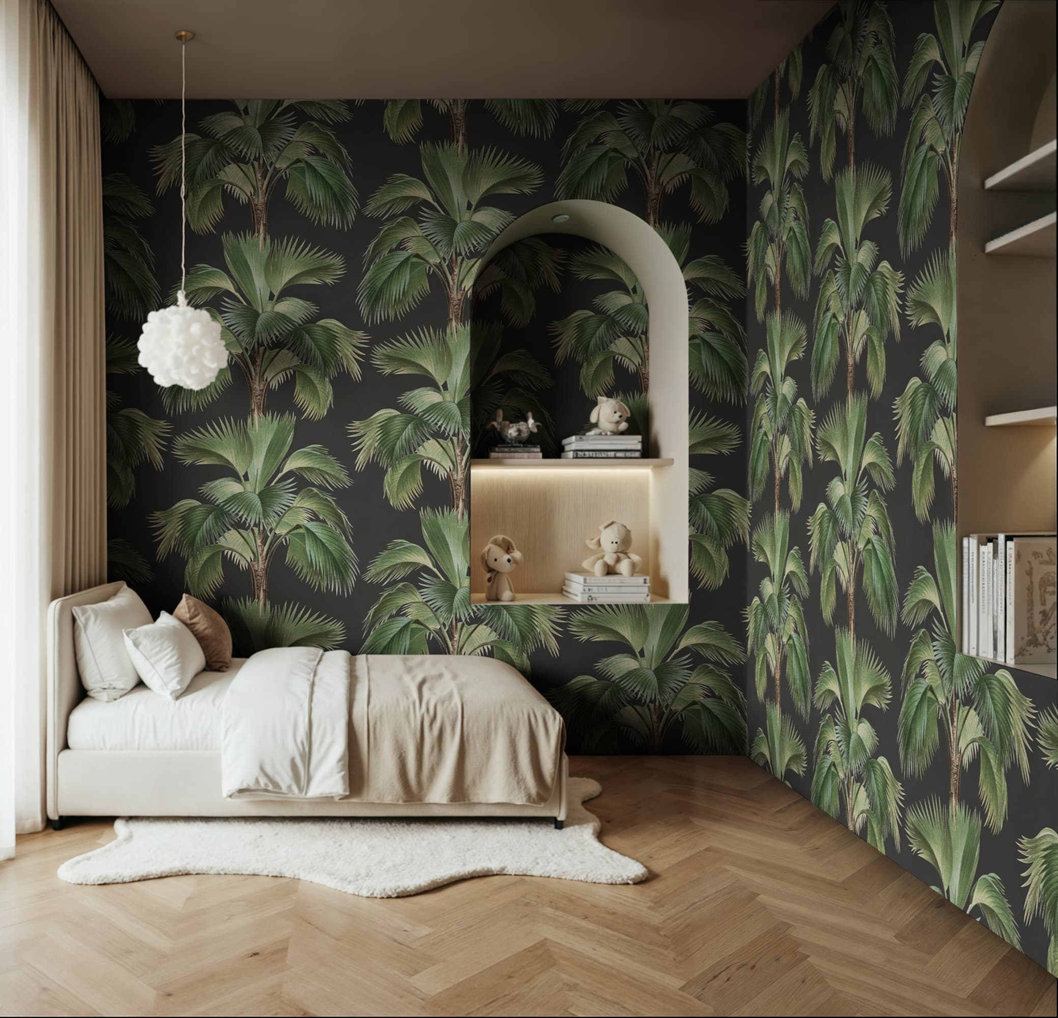 Acest tapet aduce un suflu exotic. Ideal pentru livinguri, dormitoare sau birouri, creează un ambient relaxant și stilat.