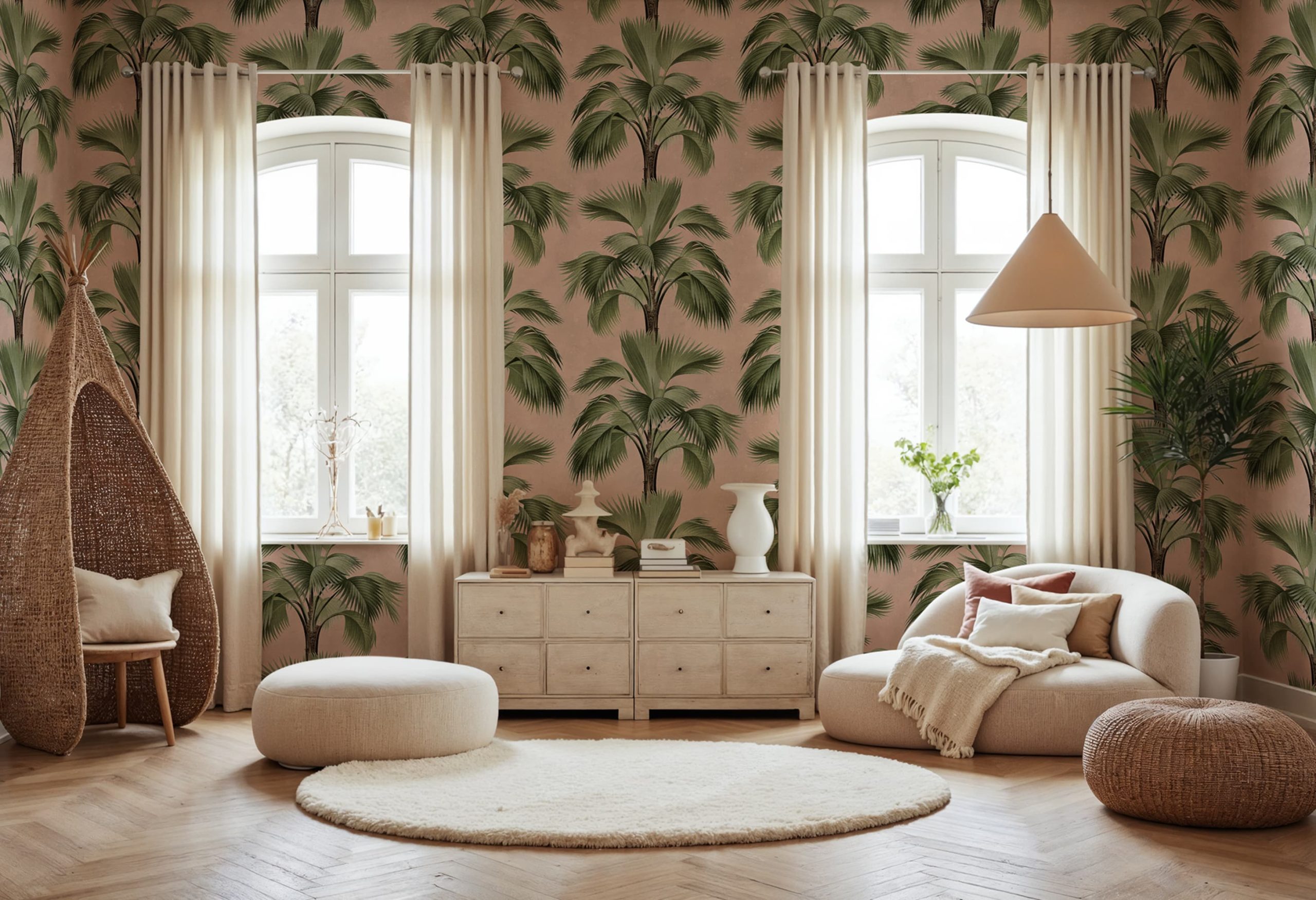 Transformă-ți casa cu acest tapet vibrant, cu motive tropicale și un fundal roz delicat. Creează un ambient relaxant și plin de personalitate. Ideal pentru orice cameră!