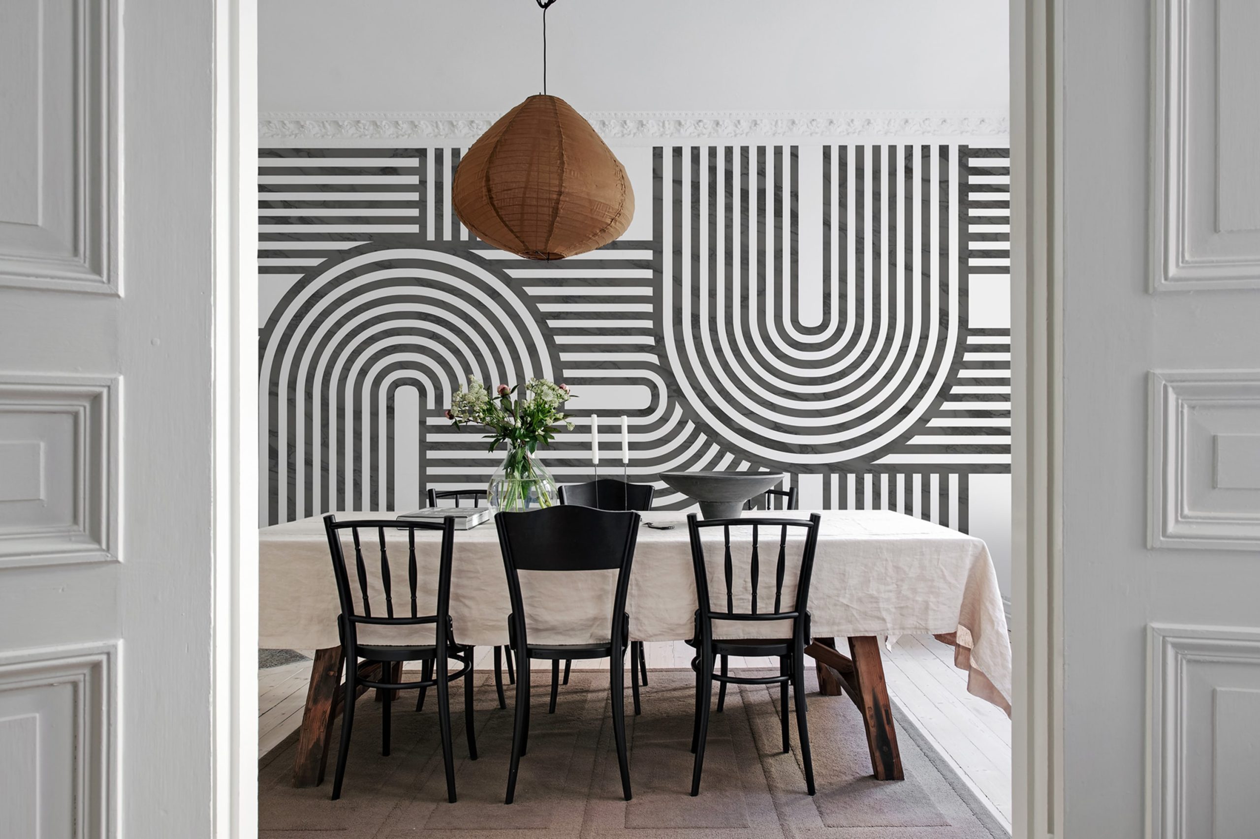 Un model grafic îndrăzneț! Formele sale interconectate și schema de culori din grafit fac o declarație, cu siguranță.