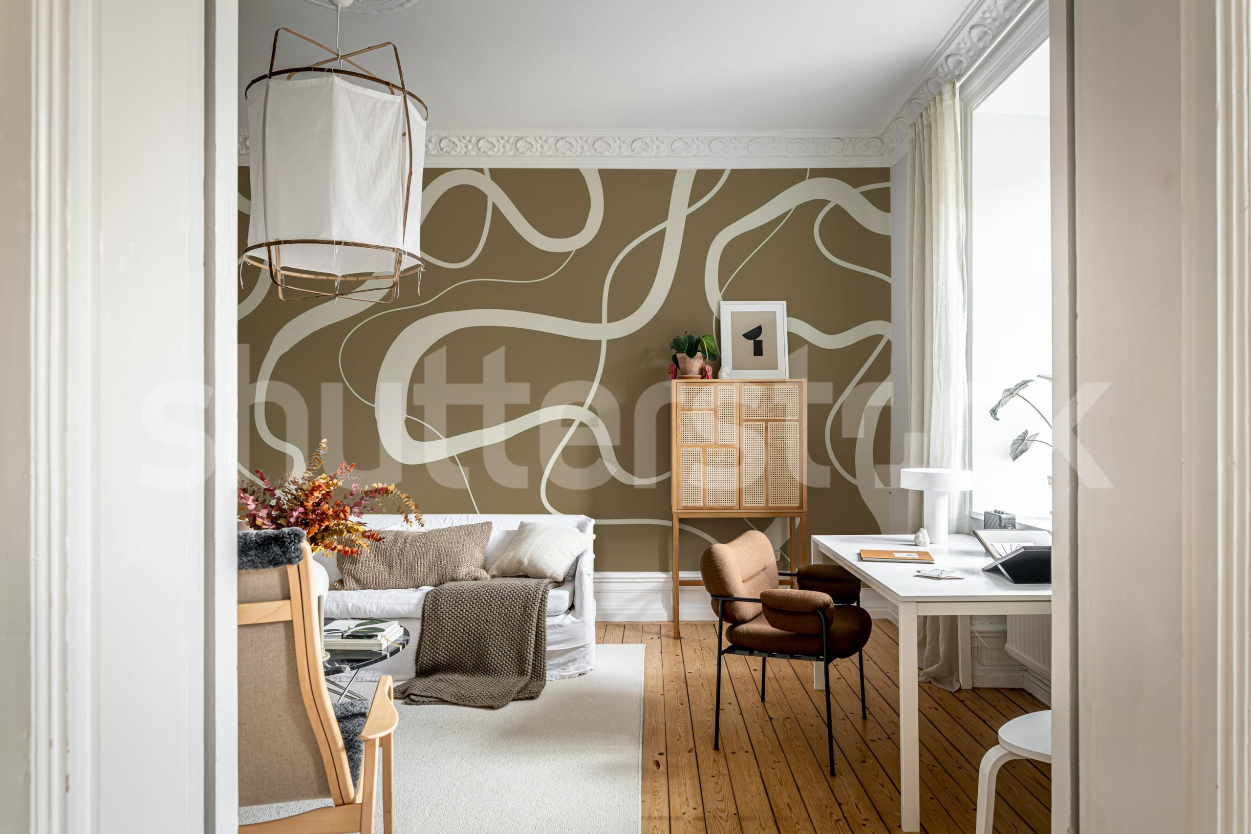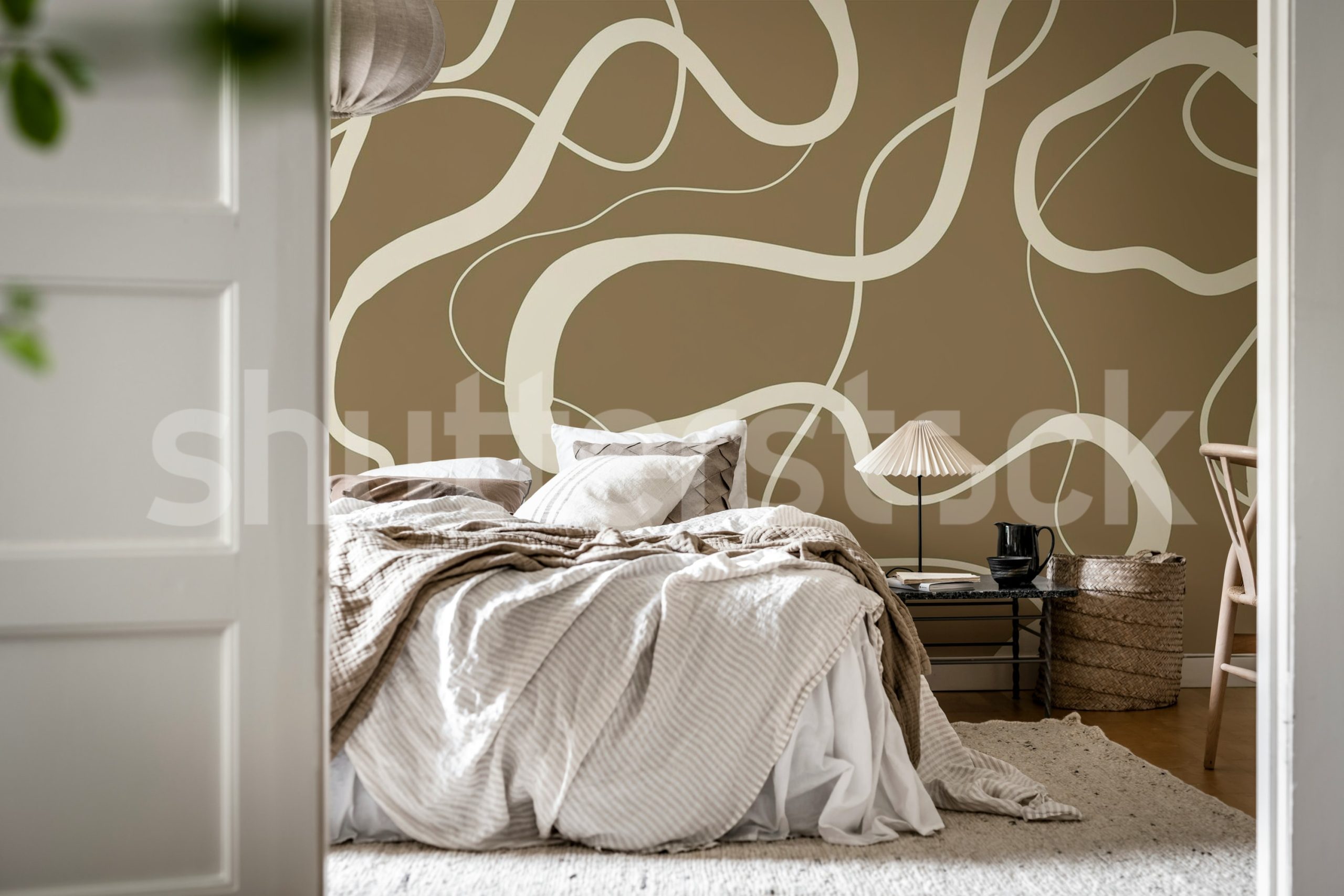 Acest tapet aduce un aer modern și artistic oricărui spațiu. Designul său unic, cu linii fluide, creează un efect vizual captivant și sofisticat. Perfect pentru un interior elegant și primitor.