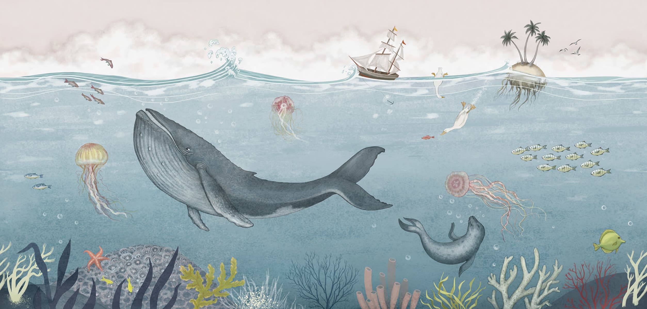 Home Tapet și Fototapet Under the Sea, Blue, Rebel Walls